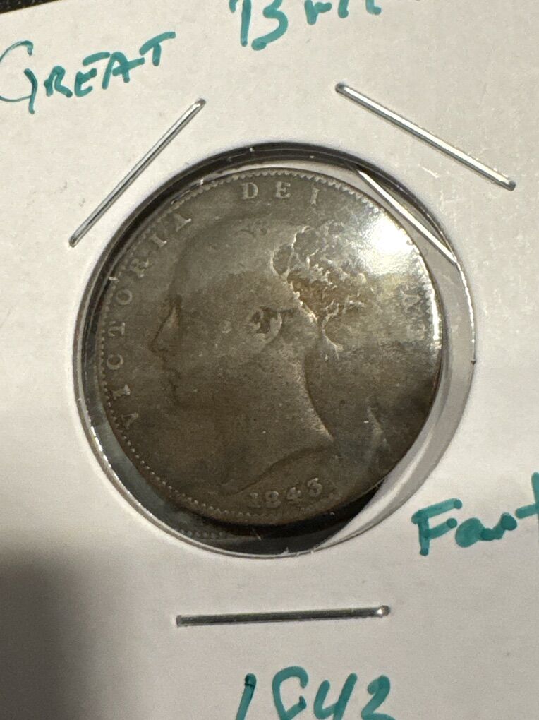 ApplePayHis lot of 4 British farthings is a great group of old coins. They all have Queen Victoria on them. The 1843 has a bit of damage on the edge at the 4 o’clock position. Noted in closeup photo. The others are great for coins of this age. I will meet in person to sell or can mail for $4.50 with tracking.
