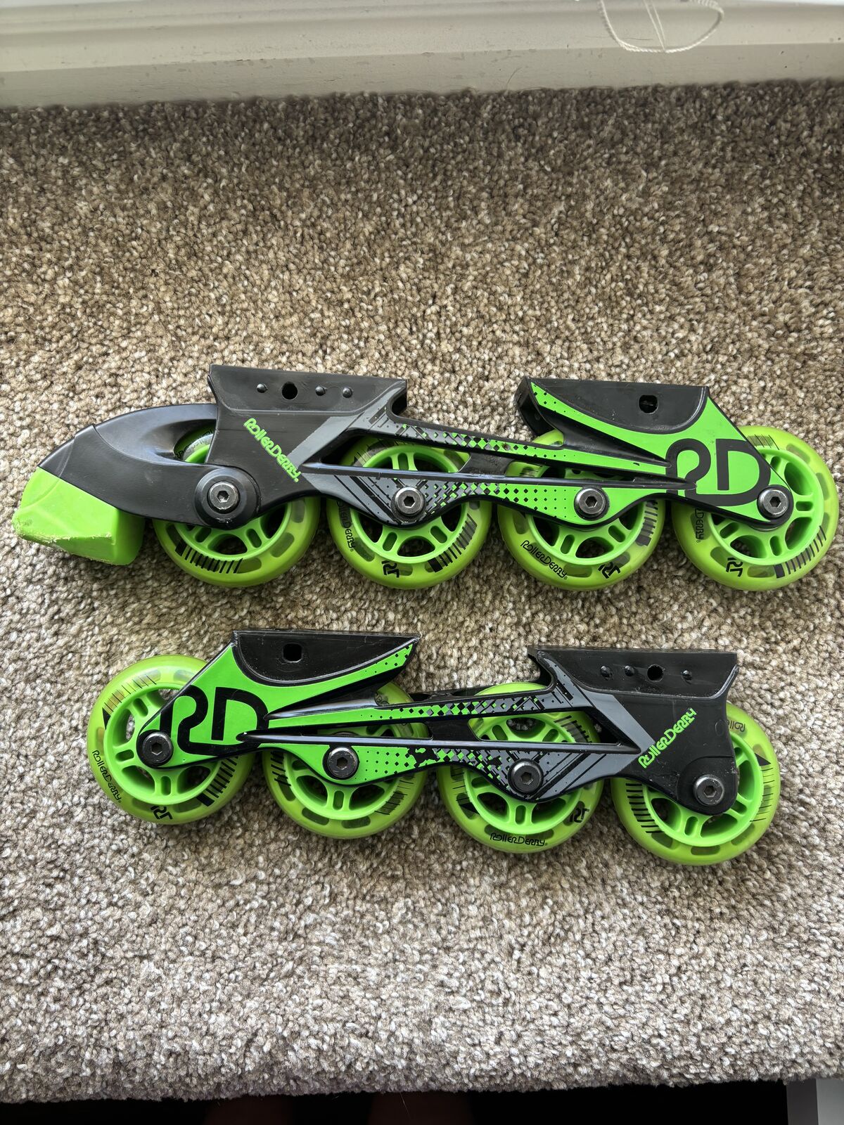 You can change them from rollerblades to rollerskates. my daughter didnt use them much. 20$ text please