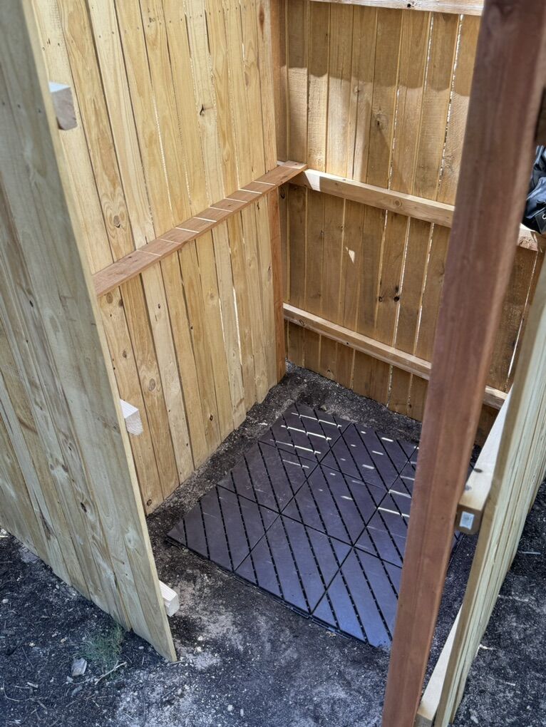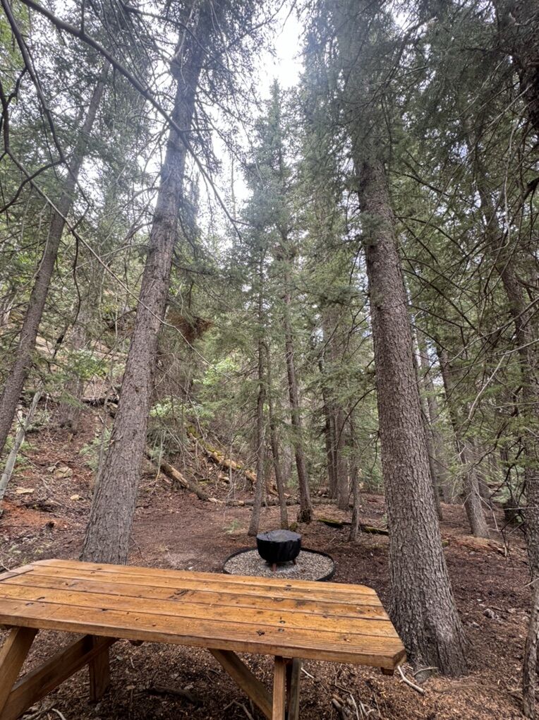Features we love: •Two entrances: One for regular vehicles, one for RVs •Power & Internet Available •Fire pit, picnic Table, eco-bathroom, built with cedar wood •Private trail & rock wall leading to panoramic views •Zip Line (our kids love this) •The land is fenced with cedar wood