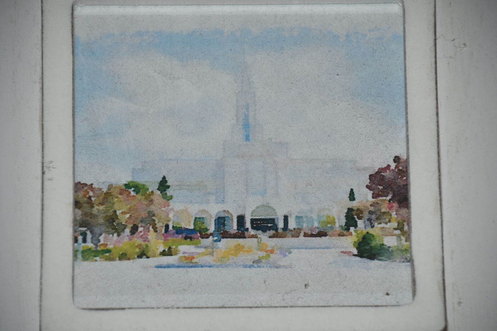 This WOODEN "FAMILY" WALL HANGING is about 17" x 17". It has a TEMPLE picture but it can be changed. Our home is smoke free. Questions??? Please ask. We are located in Plain City. Cash only please.