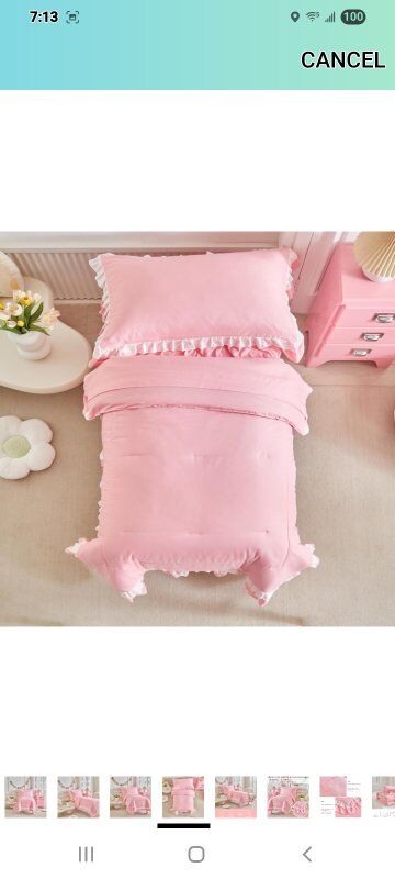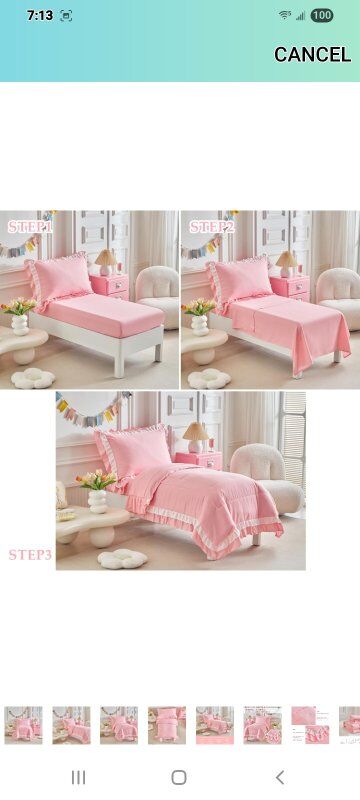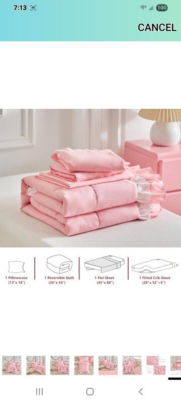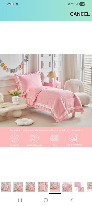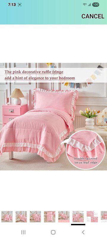 Gentle Comfort for Little Ones:Made of 100% microfiber material. Good rest is important for peaceful sleep. This set feels soft and cozy to give gentle comfort at bedtime, helping your child relax all night. Sweet Ruffle Design for Girls:Pretty Double Layer Ruffle Fringe toddler bedding with pink-and-white ruffle fringe. Makes the bed look like a princess dream! Features white Ruffle trim on solid pink fabric. Perfect for toddler girls' special bedroom. What You Get: 4-Piece Toddler Bedding Set includes: 1 reversible comforter (42x57inch) with 3.5 inch tassel, 1 reversible pillowcase (20" x 30"), 1 flat top sheet (45" x 60") and 1 fitted bottom sheet (28" x 52" x 8"). Easy Cleaning & Care:Machine wash separately in cold water (gentle cycle). Tumble dry on low heat. Iron on low heat if needed. Use only non-chlorine bleach when necessary. Important: Do not dry clean.