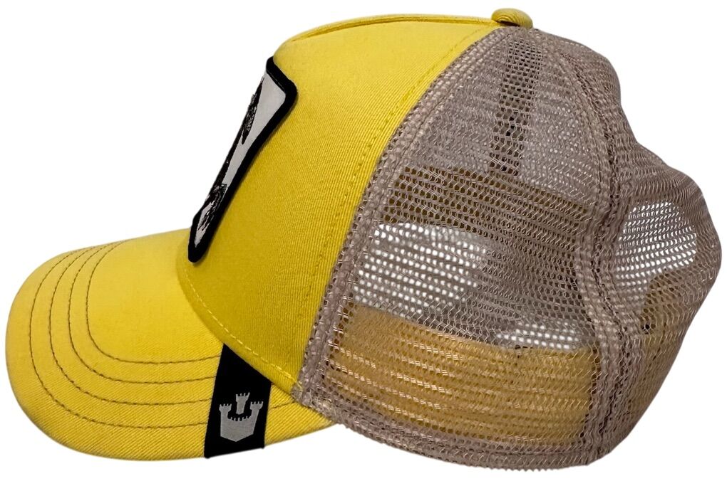 The Goorin Bros Sly Stallion Yellow Trucker Style Snapback is a stylish and lightweight hat suitable for various occasions such as travel, casual outings, and workwear. The hat features a solid yellow color with a mesh back for breathability. Made from a blend of polyester and cotton, this adjustable snapback is perfect for outdoor activities and is designed for all seasons. With its animal-themed design and colorful style, this hat is a versatile and fun accessory for both men and women.