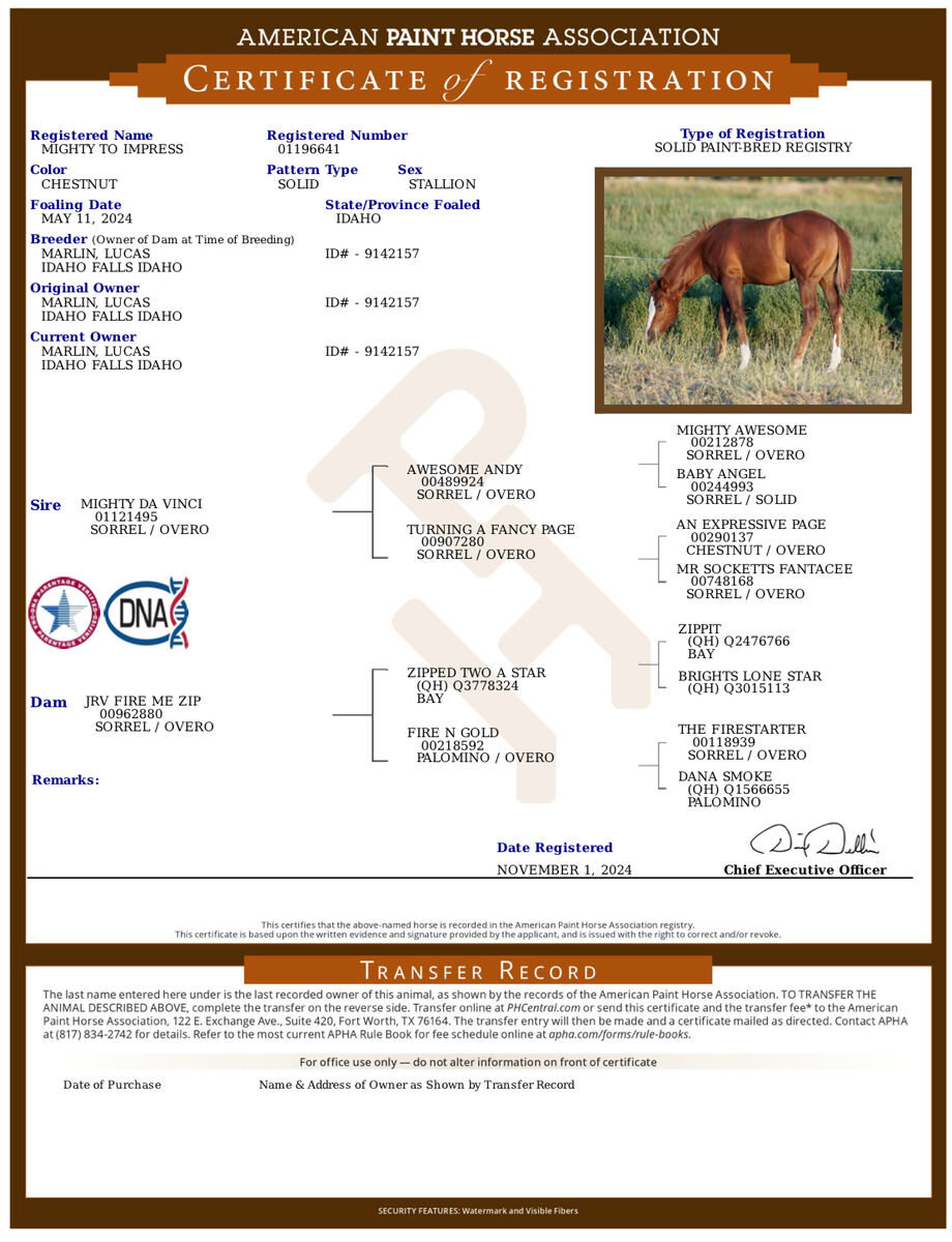 He is already halter broke, stands tired, pretty good to be washed and with his feet, even great to load! His papers are full of winners. He already has the athleticism, correctness, and wits, that you want in your next prospect for show or even just a flashy ranch horse or head horse.
