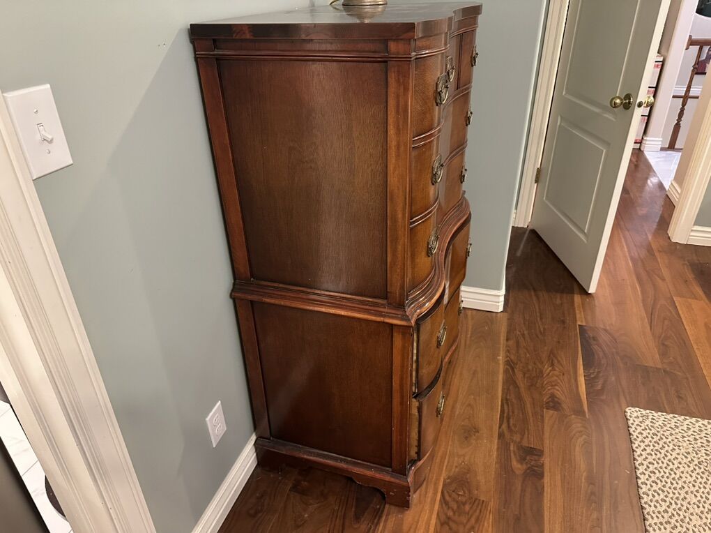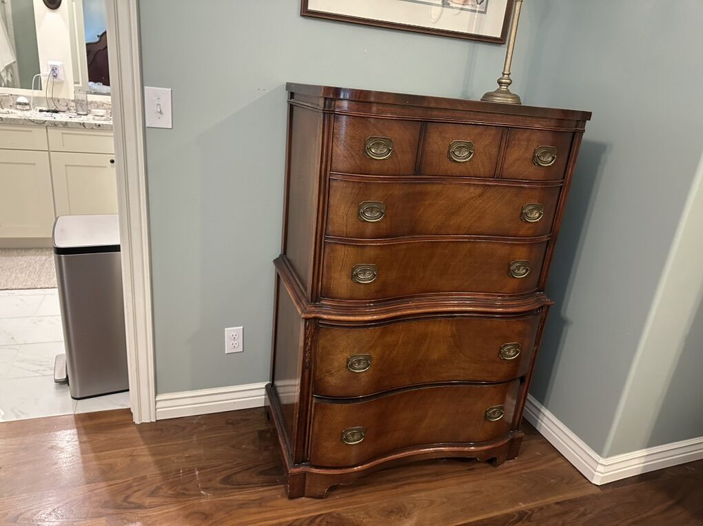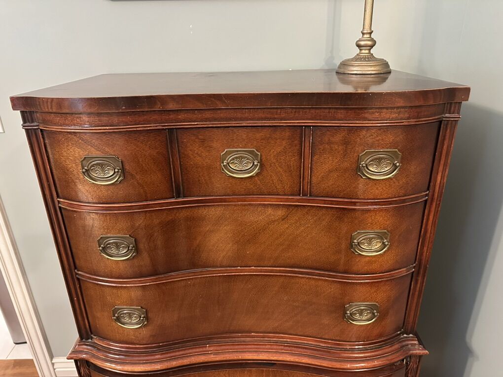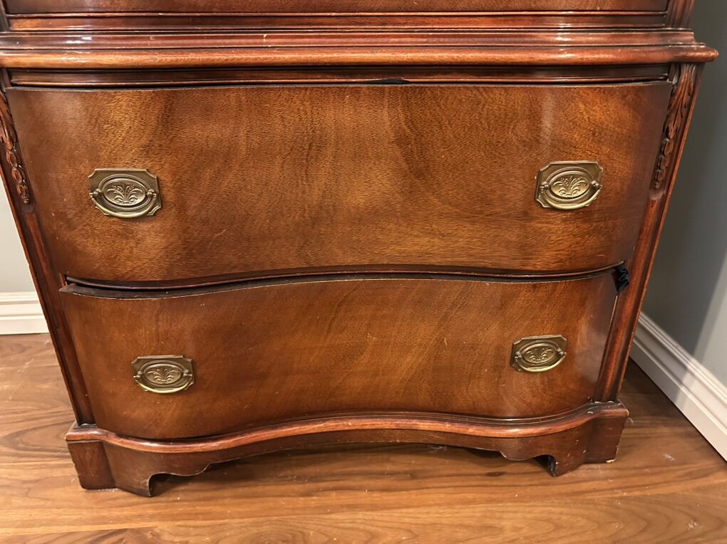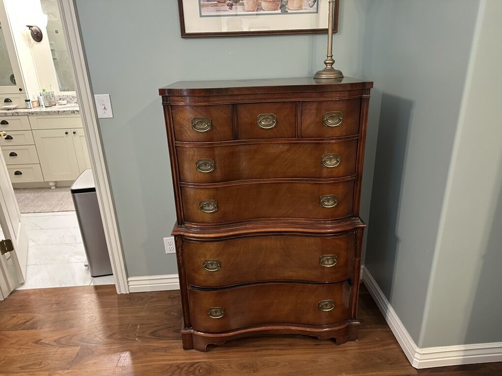 VenmoDrexel Heritage bedroom set. Asking $800. OBO. This might be the nicest furniture ever made. Super high-quality. Original finish. These sets bring $7,000 online . The furniture is in very good shape. If you wanted it to be super nice you want to refinish the top of the dresser. Dimensions on the dresser are 21 inches deep 35 inches high and 60 inches wide. The dimensions on the high boy dresser are 20 inches deep 34 inches wide and the 52 inches high. The mirror is 34 inches high off the dresser and 48 inches wide.