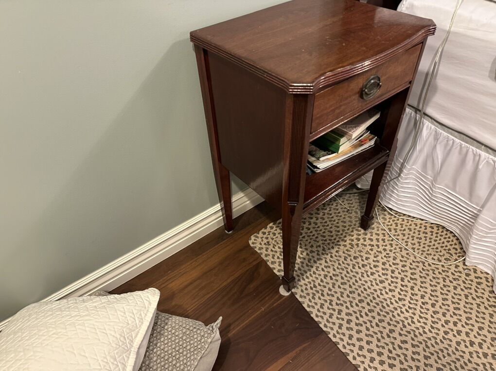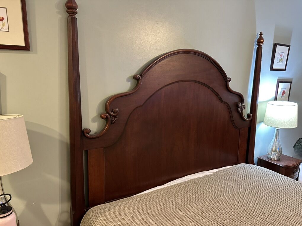 The set includes a headboard and two nightstands that look similar but not matching Drexel heritage furniture. The headboard is not Drexel heritage furniture either.