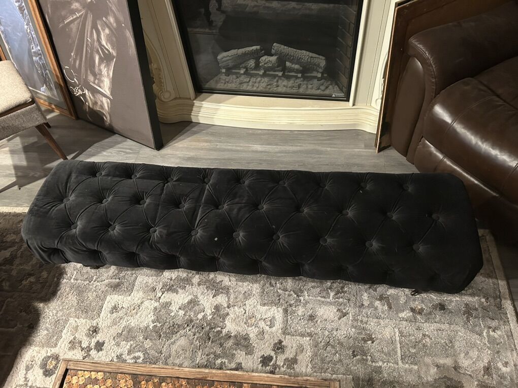 CashAppLong Dark Navy Blue Tuffed Velvet Bench ottoman with classic legs. It also has a secret compartment for hiding and storing valuables underneath the bench. $125.00 OBO