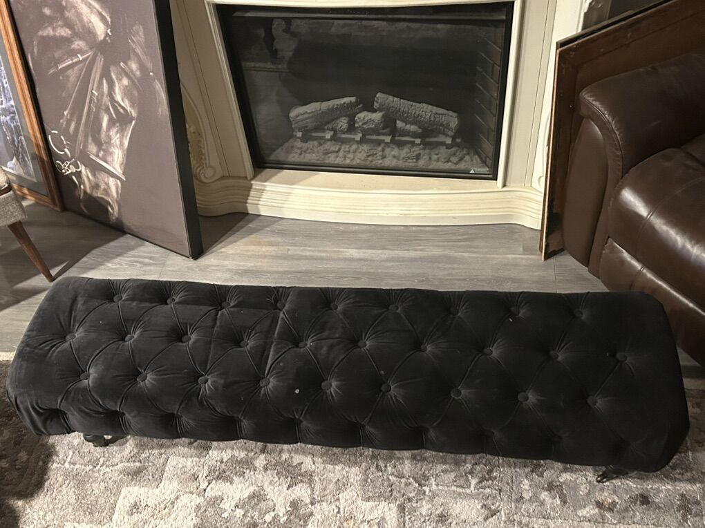 CashAppLong Dark Navy Blue Tuffed Velvet Bench ottoman with classic legs. It also has a secret compartment for hiding and storing valuables underneath the bench. $125.00 OBO