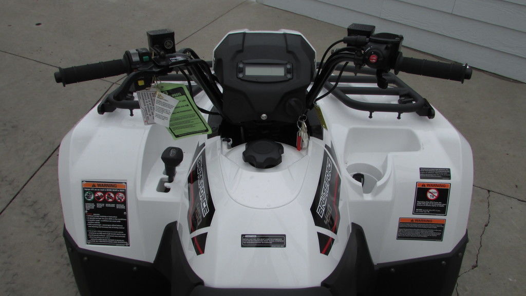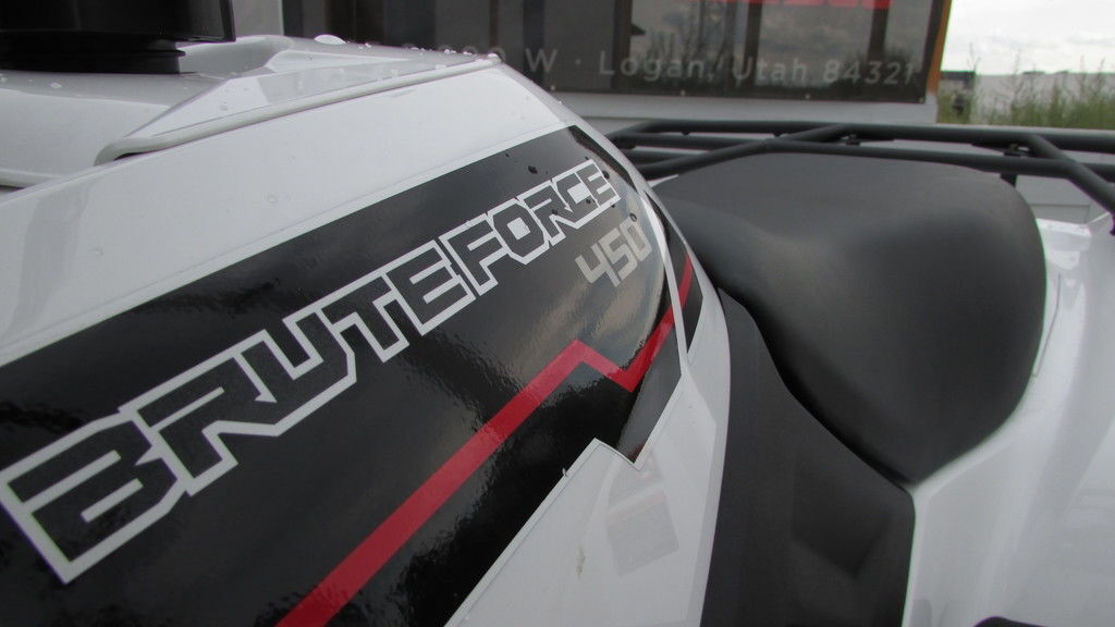 Energize work and play on the all-new Brute Force® 450 4x4 ATV. Combining power and agility this mid-size ATV is equipped with a liquid-cooled 4-stroke 443cc engine, smooth CVT transmission, and a 2WD/4WD plus front differential lock system that is built to tackle demanding tasks while boasting unique sporty performance.