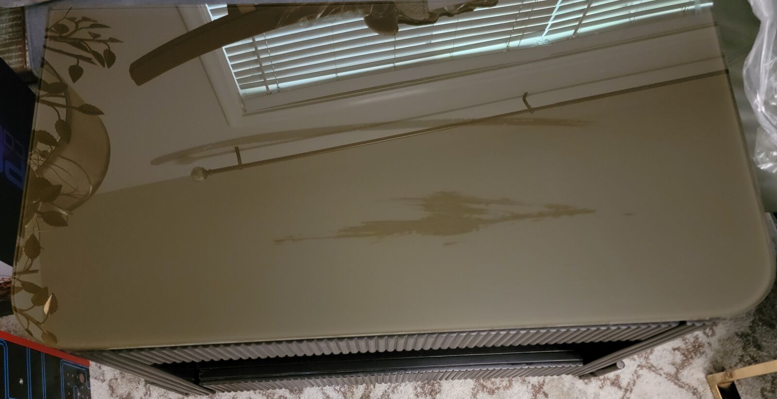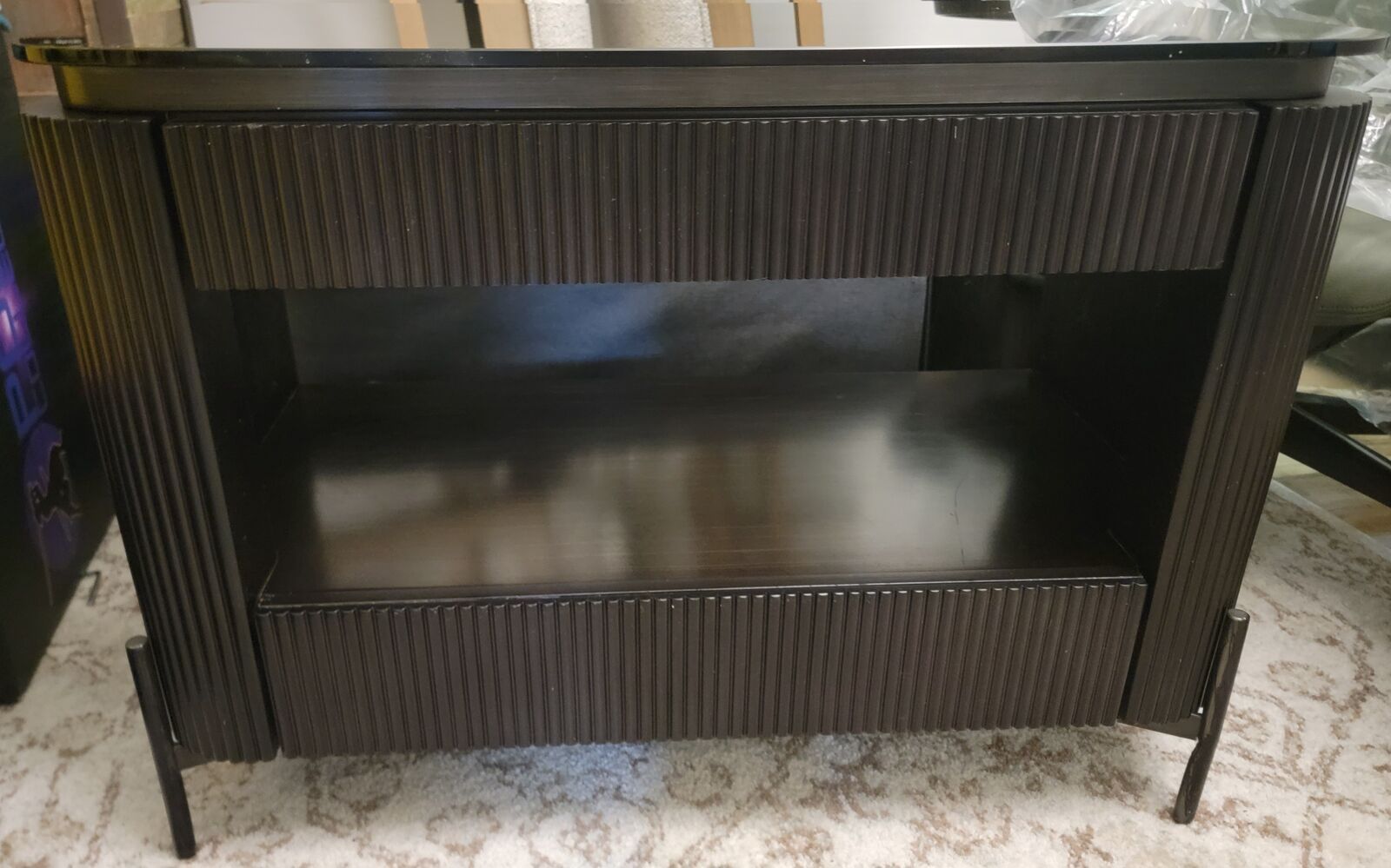 New Assembled Universal Furniture Coastal Iris Nightstand - Glamorous Opaque Bronze Glass Top & Sleek Bronze Metal Base, 2 Drawers.