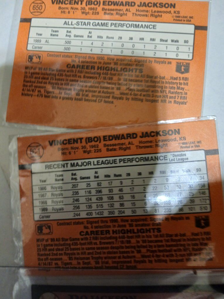 Bo Jackson, Don Donruss 1990 Royals OF, MVP/All Star Topps, card #540, alot of great cards some of them error cards. make me an offer