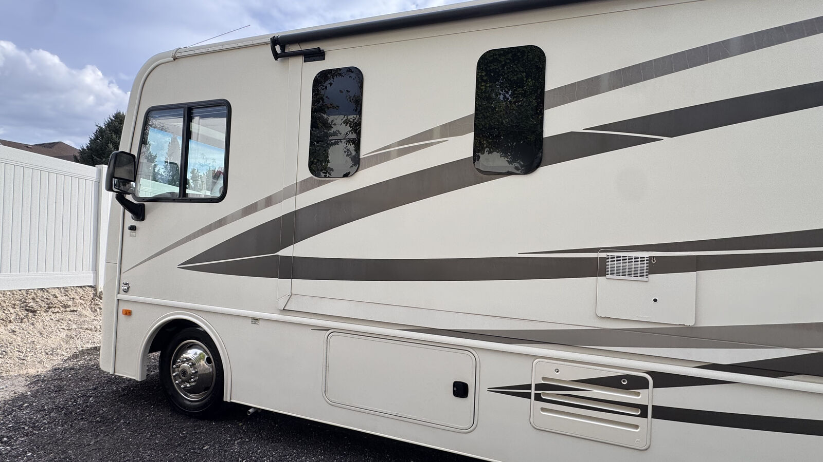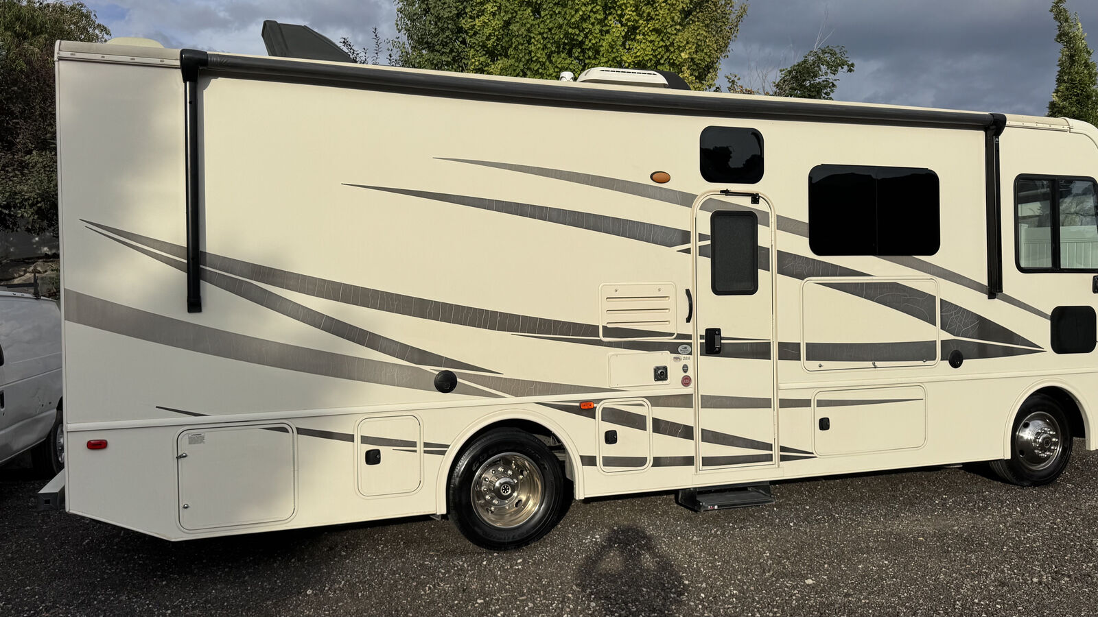 VenmoWhy buy new? This 28 Foot Fleetwood Flair is wonderfully equipped, and priced thousands below retail. Step inside and it feels less like an RV and more like a modern, cozy home on wheels. The soft-touch ceiling, hardwood cabinetry, and warm LED lighting create a comfortable space to relax after a day on the road. With a thoughtfully designed floorplan, this coach proves you don’t need to be 40 feet long to have everything you need. The living area offers a spacious dinette and a Hide-A-Loft™ queen drop-down bed, perfect for family or guests. The galley kitchen is fully equipped with a 3-burner range, convection microwave, large sink, and refrigerator—ready for home-cooked meals wherever your travels take you. The private bedroom features a queen bed, overhead storage, and its own TV, while the bathroom includes a glass shower door, skylight, and residential-style fixtures. Entertainment is everywhere: an LED TV in the living room, an LED TV in the bedroom, and a large exterior TV for movie nights under the stars. Music lovers will appreciate the stereo system with both indoor and outdoor speakers. On the road, the Ford Triton V10 engine provides plenty of power, while features like side-view cameras, heated mirrors, cruise control, and a power driver’s chair make driving smooth and stress-free. The 4-point hydraulic leveling system makes setup at camp a breeze. Outside, you’ll find pass-thru storage, a heated wet bay, solar prep, frameless windows, and a power awning with LED lighting. Whether you’re boondocking, tailgating, or heading to a national park, this Flair has you covered. And best of all—this motorhome is being sold fully furnished. Bedding, kitchenware, chairs, and accessories are included, so it’s not just an RV, it’s a ready-to-roll adventure package. At just 18,000 miles and priced at $58,987, this Fleetwood Flair 28A offers incredible value compared to similar units on the market. Key Highlights: -Engine/Chassis: Ford 6.8L Triton V10 on Ford chassis -Generator: Onan® 4.0kW MicroQuiet -Power Systems: 50 AMP service, dual 6V deep cycle batteries, solar prep pre-wired -Leveling: 4-point hydraulic leveling system -Comfort: Ducted A/C, premium furniture, hardwood cabinetry, LED lighting -Exterior: High-gloss fiberglass finish, power awning w/LED lights, heated wet bay, frameless windows, exterior shower, pass-thru storage, large exterior TV + entertainment center -Interior Comfort: Modern décor, ducted A/C, premium furniture, hardwood cabinetry, roller shades, LED lighting -Sleeping Capacity: Queen bed in rear + Hide-A-Loft™ drop-down Queen bed + convertible Dream Dinette + Convertible Couch to Bed -Entertainment: 32” LED TV in living room, 24” LED TV in bedroom, ceiling/exterior speakers w/stereo system -Kitchen: 3-burner range with cover, convection microwave, refrigerator/freezer, large sink, laminate countertops -Bathroom: Glass shower door, skylight/vent fan, residential fixtures, China bowl toilet with sprayer -Driver Comfort: Power captain’s chairs, side-view cameras, cruise control, in-dash stereo w/DVD, power windshield shade