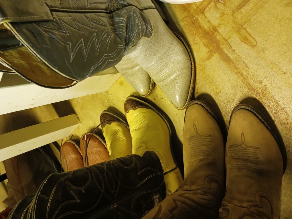 Size 6 1/2D in the Two-toned brown boots and the brown boots. Size 6D in the Two-toned gray boots. Size 7 Airwalk men's shoes.