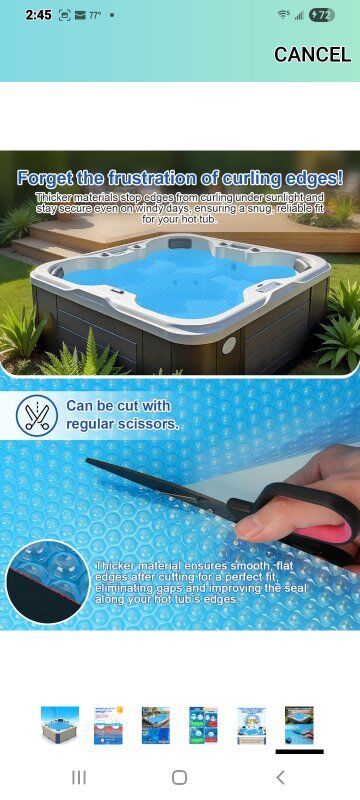 VenmoNew in Package! Abimars- 6x6 Solar Hot Tub Bubble Cover