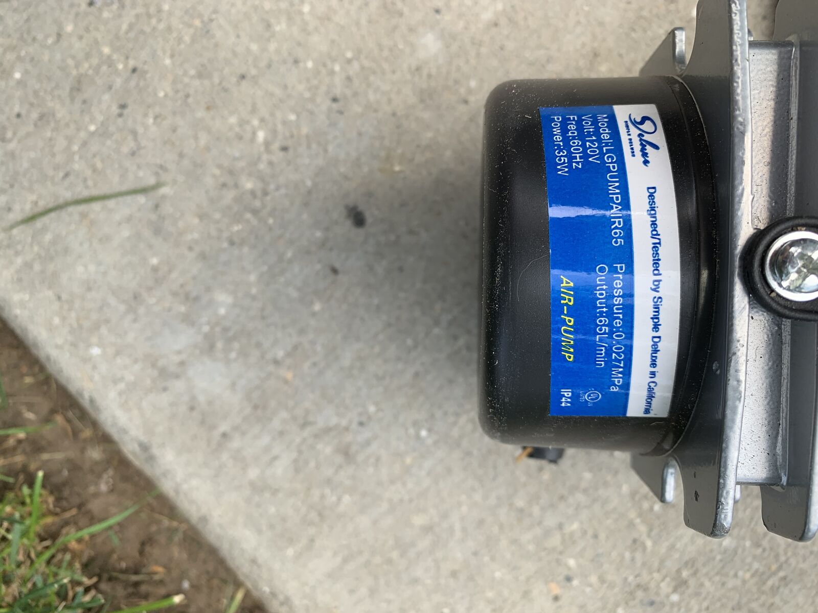 This is a Simple Deluxe Model LGPUMPAIR65 commercial air pump. Pumps at 65-L/min. Also comes with a 6 outlet and tubing. I have used with hydroponics, but can be used for an aquarium as well.