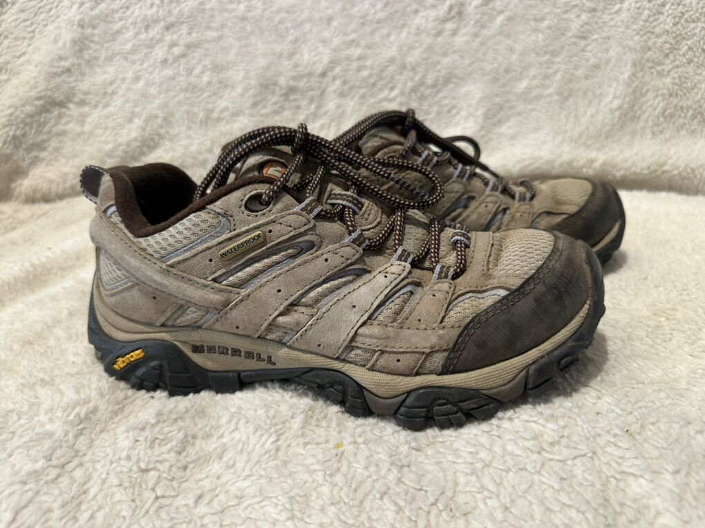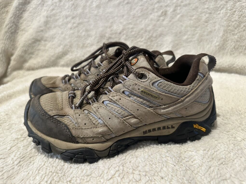 Merrell women’s size 7 beige with blue trim, mesh and leather hiking shoes. These are in good condition, see photos for detail details. I take cash or Venmo, but cash is preferred. Text is best. 801-201-4446. Check out my other ads for additional sizes and styles.