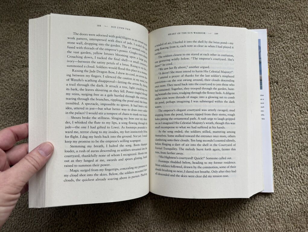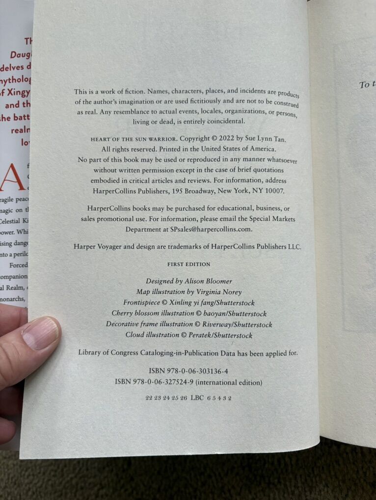 Heart of the Sun Warrior, by Sue Lynn Tan, bestselling author of Daughter of the Moon Goddess. Book 2 of the Celestial Kingdom Duology. Harper Voyager, 2022, 465 pages. First edition hardcover in excellent condition, including dust jacket. Text only. Cash or Venmo.