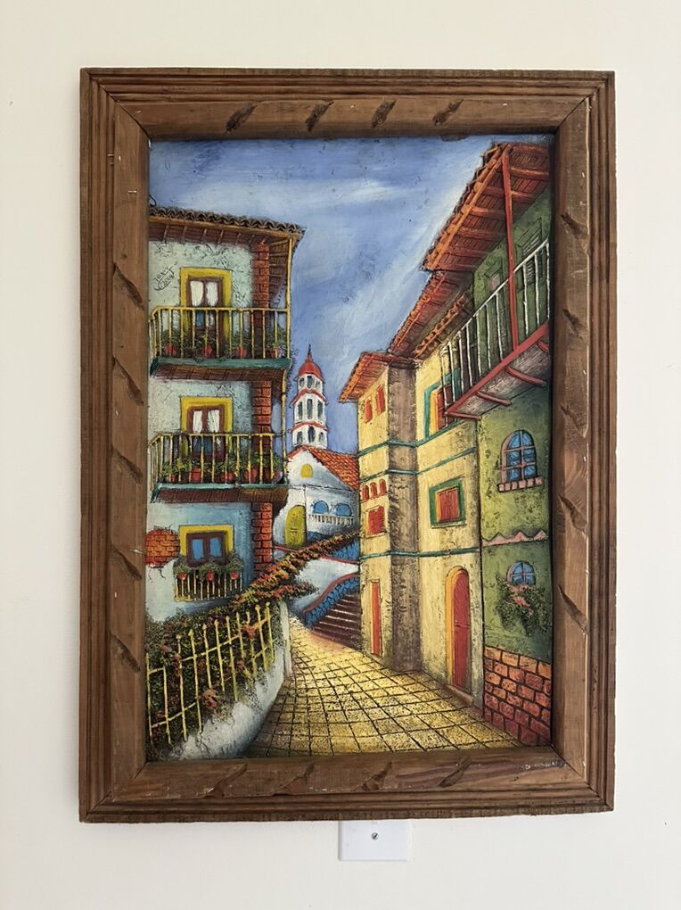 VenmoThis Beautiful Textured Village Art is Signed by Artist. It is handmade, three-dimensional artwork, this might be a painting of a European town or village scene, possibly in a Mediterranean style.