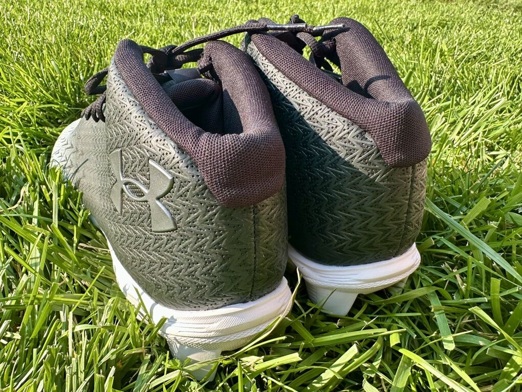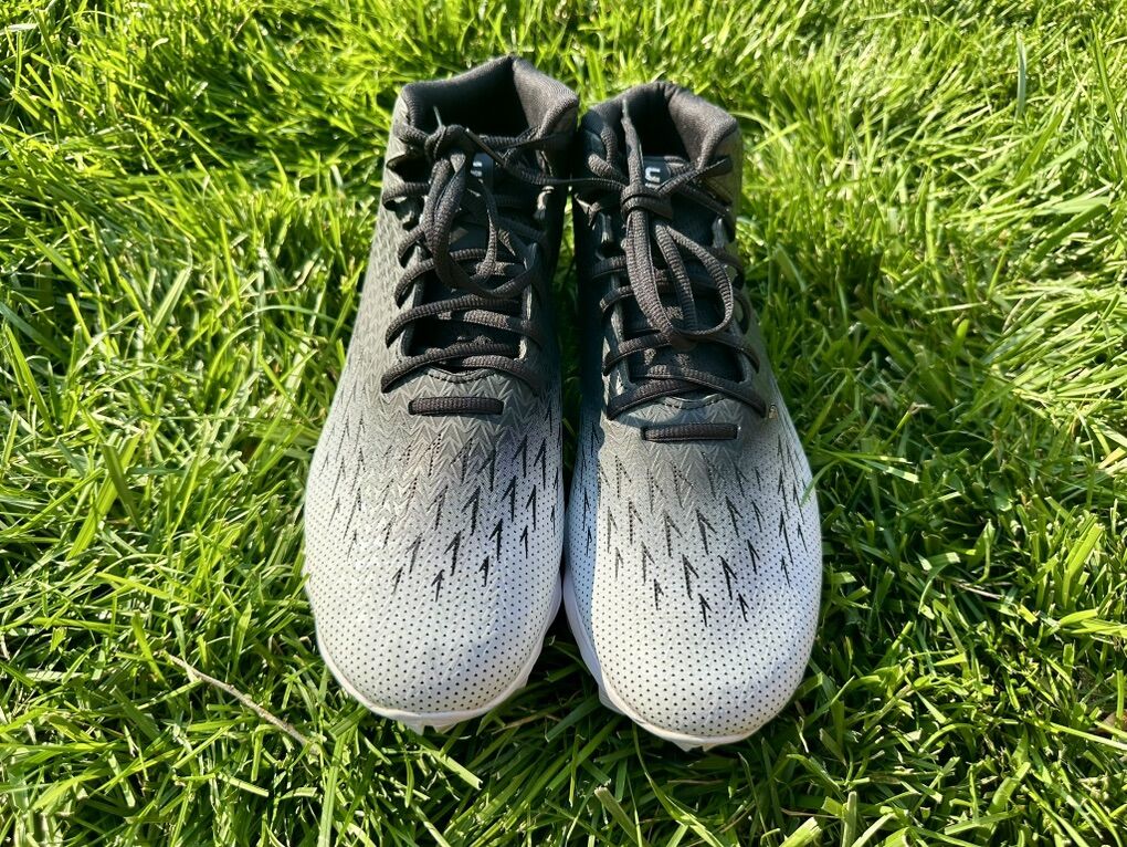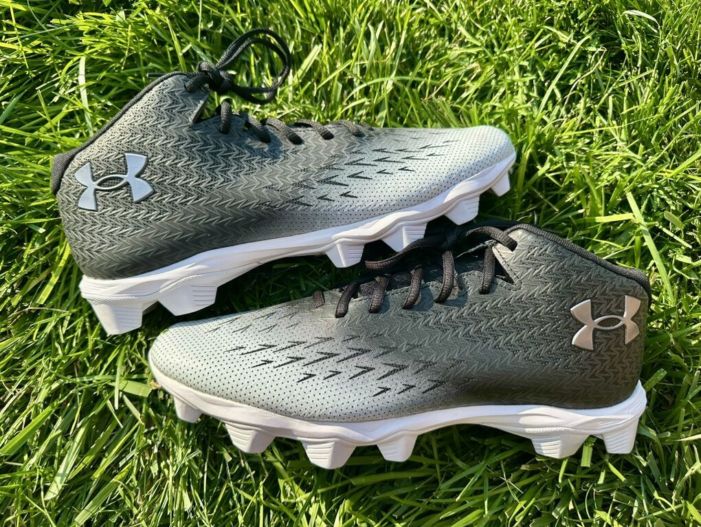 ApplePayNew, never-worn Under Armour Spotlight Franchise RM 4.0 cleats—size 11.5, classic black & white. Ideal for players who look fierce and move faster than their opponents. No box, no problem—just pristine performance. Synthetic upper with 3D‑print overlay for durability and built‑in structure. Soft synthetic collar for ankle comfort and lockdown. Mid‑height (5/8”) design for that sweet spot between speed and support. Full‑length EVA midsole cushions every push and pivot. Aggressive rubber molded cleats for traction that won’t quit on any field. New, no box or tags. smoke-free home.