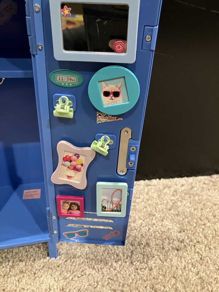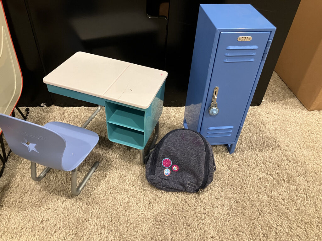 American Girl School Set. Comes with the desk, backpack, locker, lock, sticker magnets and hook. For the 18 inch doll. Local Pickup. NO CODES. Cash only. Please check my other listings and thank you for looking.