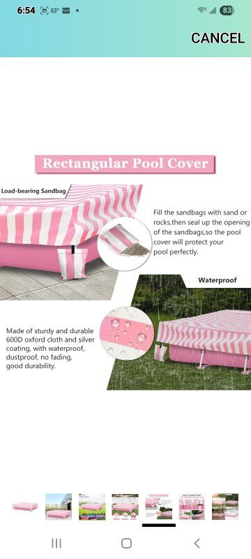The bottom of the cover has tie-down ropes & 4 sandbags increase stability to make it fit perfectly with the rectangular pool.so your cover won't collaspse Prefect Size;The cover size is 7' L x 5' W x 12"H,specially designed for 7' x 5' x 24" Rectangular Metal Frame Above Ground Outdoor Swimming Pool Durable Material;Made of 600D oxford fabric with waterproof Anti-UV coating,double needle sewing process has a stronger structure,can withstand all kinds of outdoor elements,maximize protect your rectangular metal frame pool make it always look like new All Weather Protection:Our cover can keeps your rectangular framed swimming pool away from debris,leaves and garbage,keep your rectangular framed swimming pool clean and save your time and money.