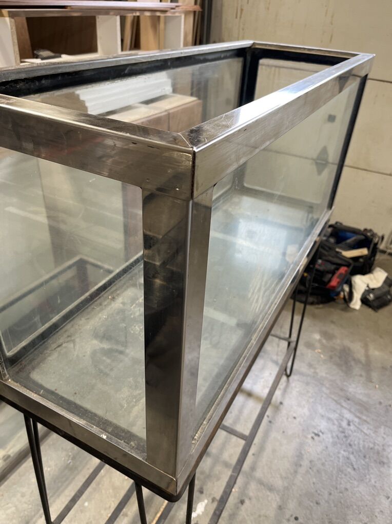 Beautiful 1970 , 45 gallon tank with original iron stand 39 inches length by 14 inches depth 18 inches high