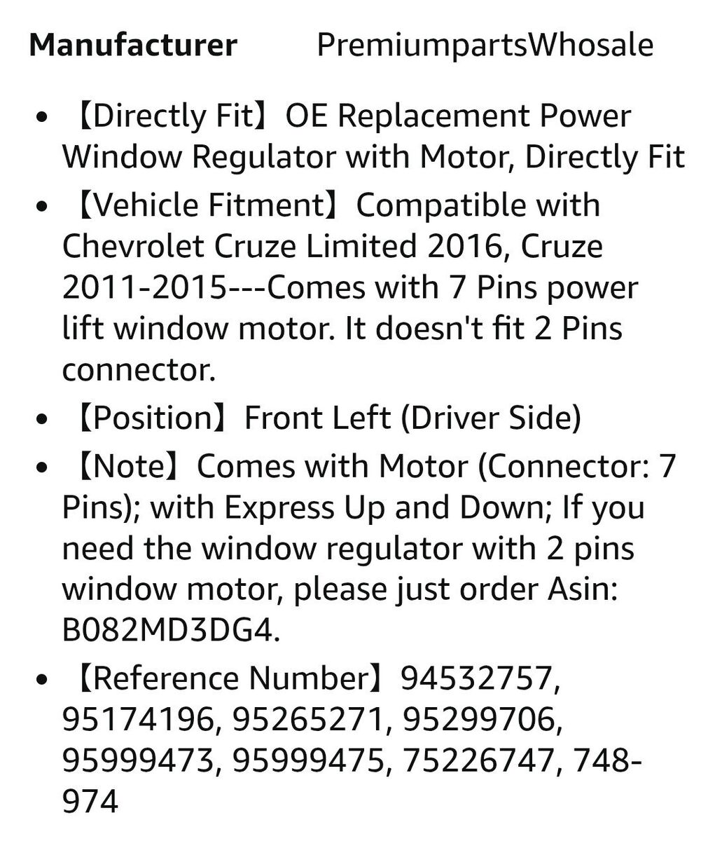 VenmoAPREMIUM WINDOW REGULATOR #WR48974S-C1 FRONT DRIVER SIDE FOR CRUZE 2011-2015, 2016 CRUZE LIMITED, $40 obo, pick it up in west valley city, send me a message if you are interested