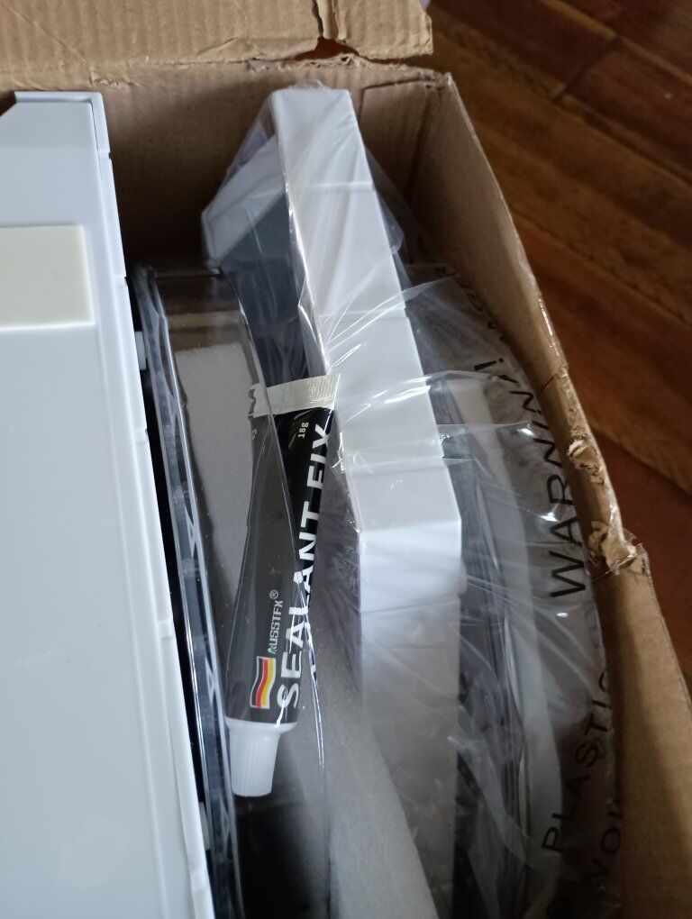 VenmoIn box - tried one in our shower/tub but it's too large and hits water. Compare on Amazon for over $30. Made for corner walls that 85-95 degrees. Comes with two shelves.