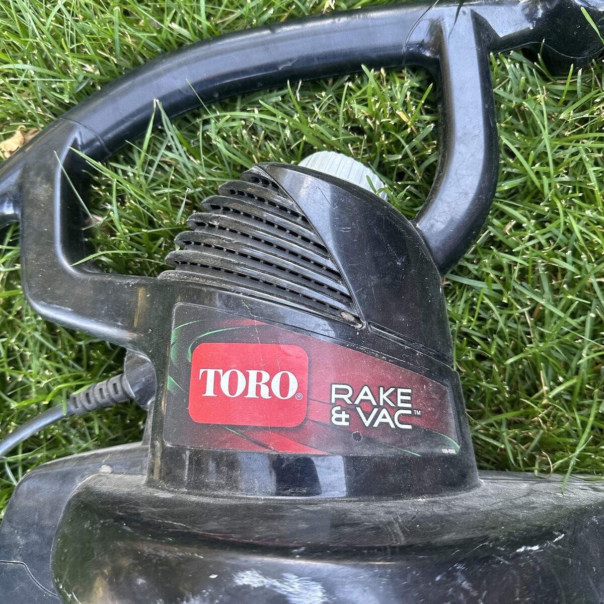 Visible Toro logo and Rake & Vac branding on housing