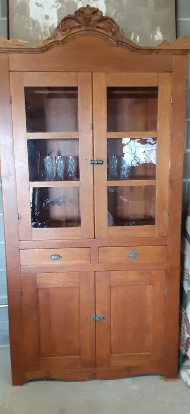 BEAUTIFUL one of a kind Sugar Pine Cupboard. This was made in the 1800's in excellent condition glass is original. One piece.