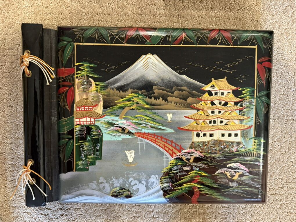 VenmoSet of 3 vintage 1950s Japanese black lacquer photo/scrapbook albums. All 3 for $40. There are about 24 pages in each album measuring 10”x13”. There is some wear on the covers, and some pages have writing on them. All pictures have been removed. Located in Sandy.