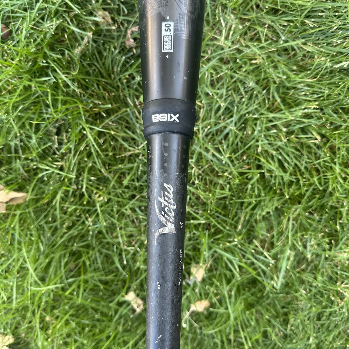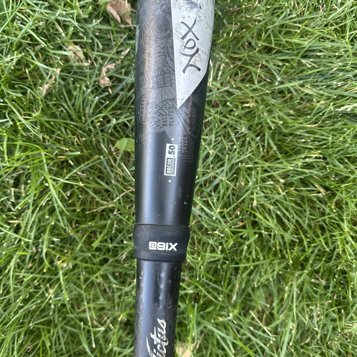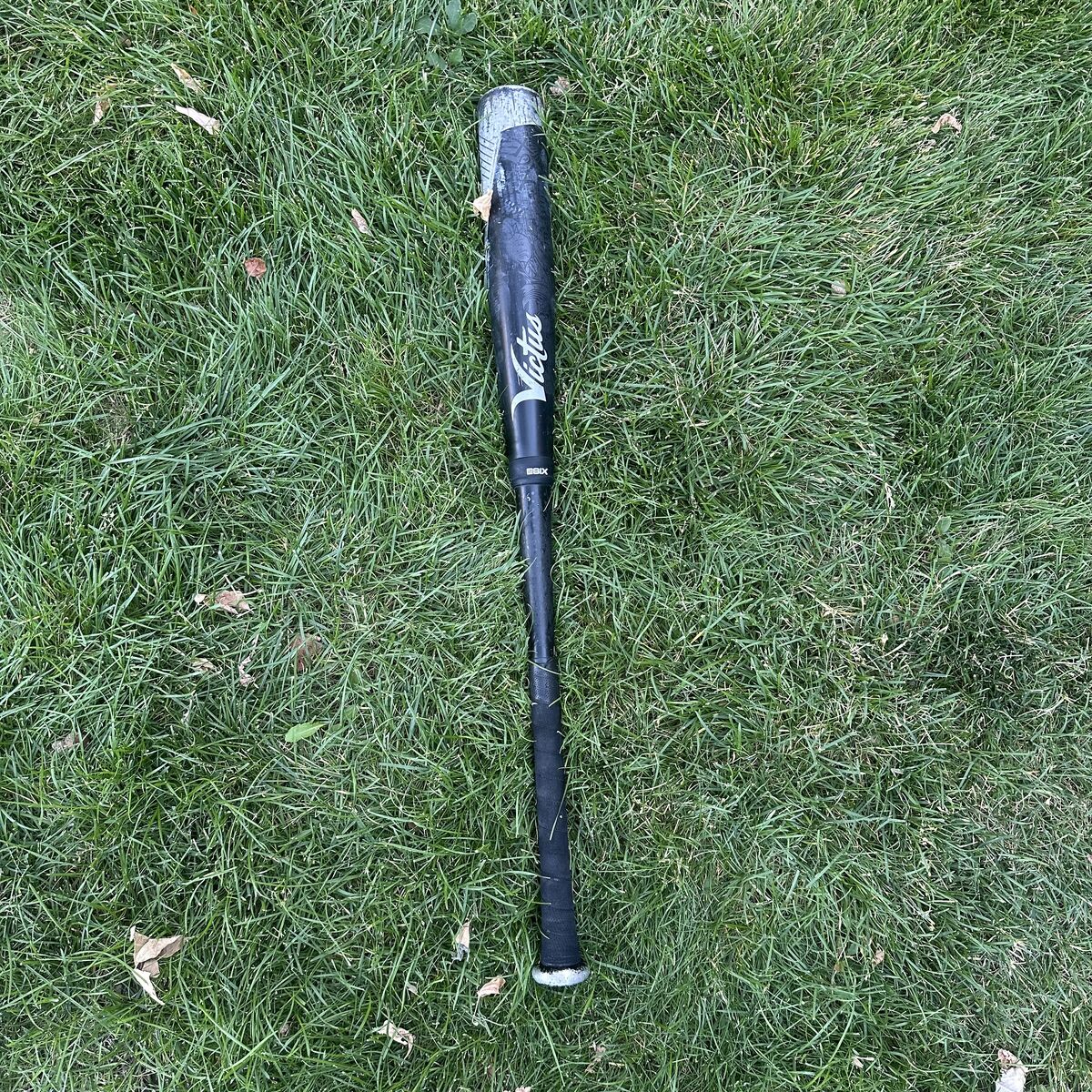 Bat features include: Model VCBN, 32 inches in length, 29 oz weight, 2 5/8 inch barrel diameter, BBCOR .50 certified for official baseball play, 2-smooth impact connection. Black and silver colorway. Victus silver script logo on handle, model and certification details etched on barrel and above grip. Original grip wrap and end cap with "32" marking and Victus logo on knob.