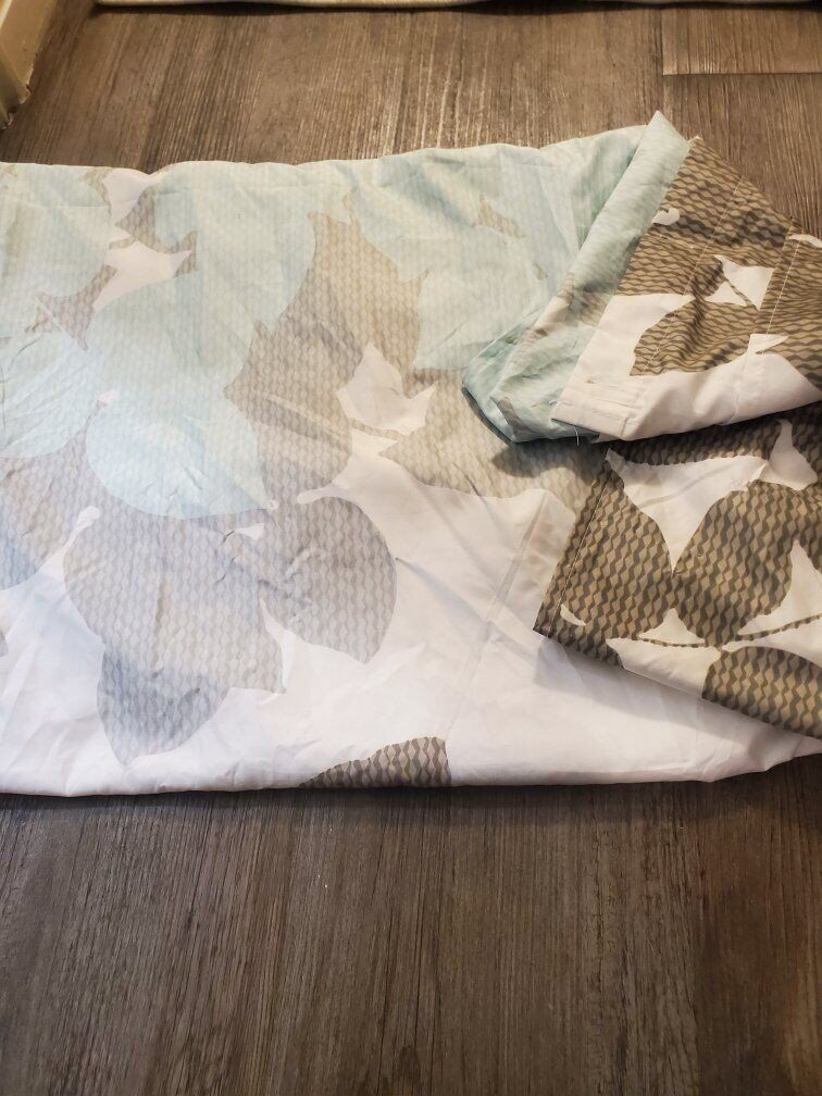 VenmoVery Soft material on this Aqua, White & Greyish tones new shower curtain. Brand New Shower Hooks Included. Sold as a 2 Piece Set Text For Fastest Response. fcfs Cash or Venmo Pick up in South Ogden