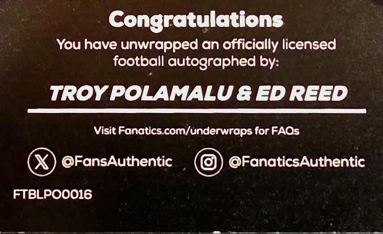 VenmoFanatics-certified NFL football signed by TWO of the greatest safeties in the history of the game: