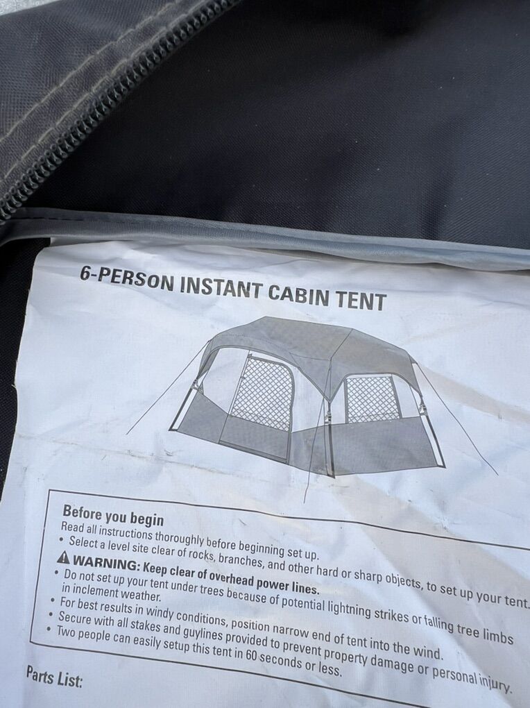 VenmoI have for sale my 6 person pop up tent. In great shape. All zippers work great. No broken parts and nice bag.