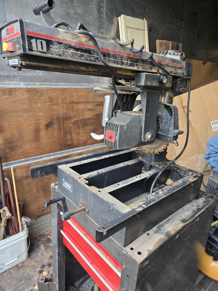 Radial arm saw. Works great! adjusts and slides to get perfect cuts. Call or text with questions.