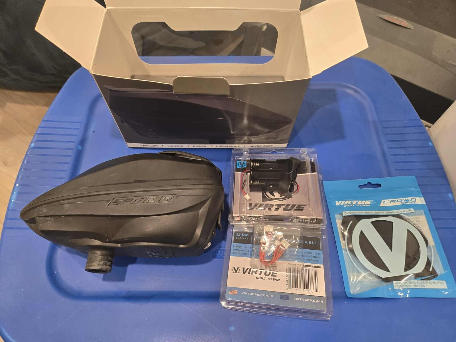 VenmoTotal Package for a high end tournament gear bag. Comes with everything you would need to play. Gear is used but only for 1 season. PE LV2 with 3 inserts (18490 shots) Storm Trooper Aero lite tank with HKarmy pro reg. Year left on the hydro Spire IR2 with Ncharge lith battery installed Xradar chrono PE Roller gear bag w/extras and 11 pods CRBN S/M 4 pod strapless harness CRBN Pro Zero Mask- Smoke with extra lens Guru Gun stand for the Marker
