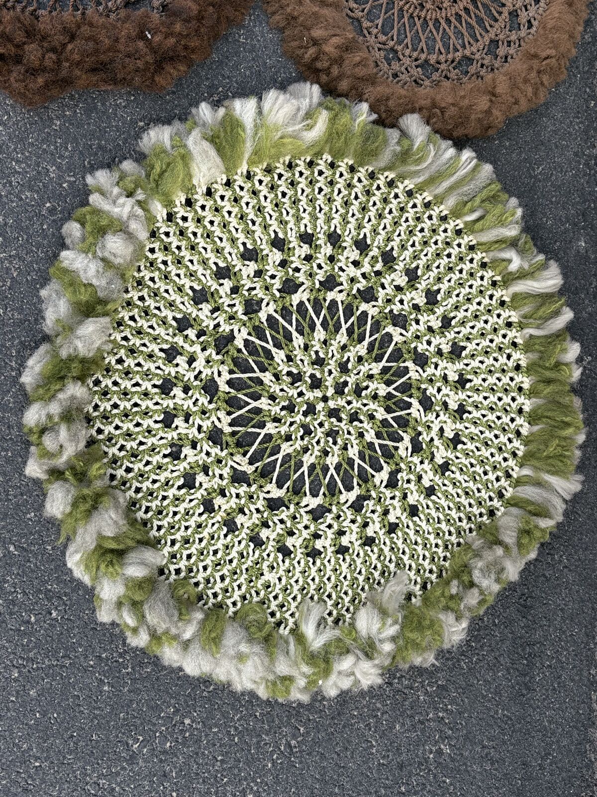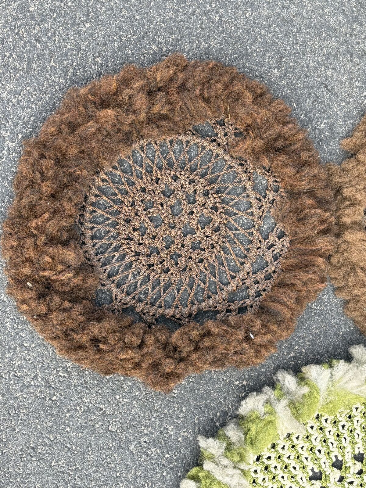 VenmoFunky vintage 70’s crochet dolleys metal rimmed, good for plants and more
