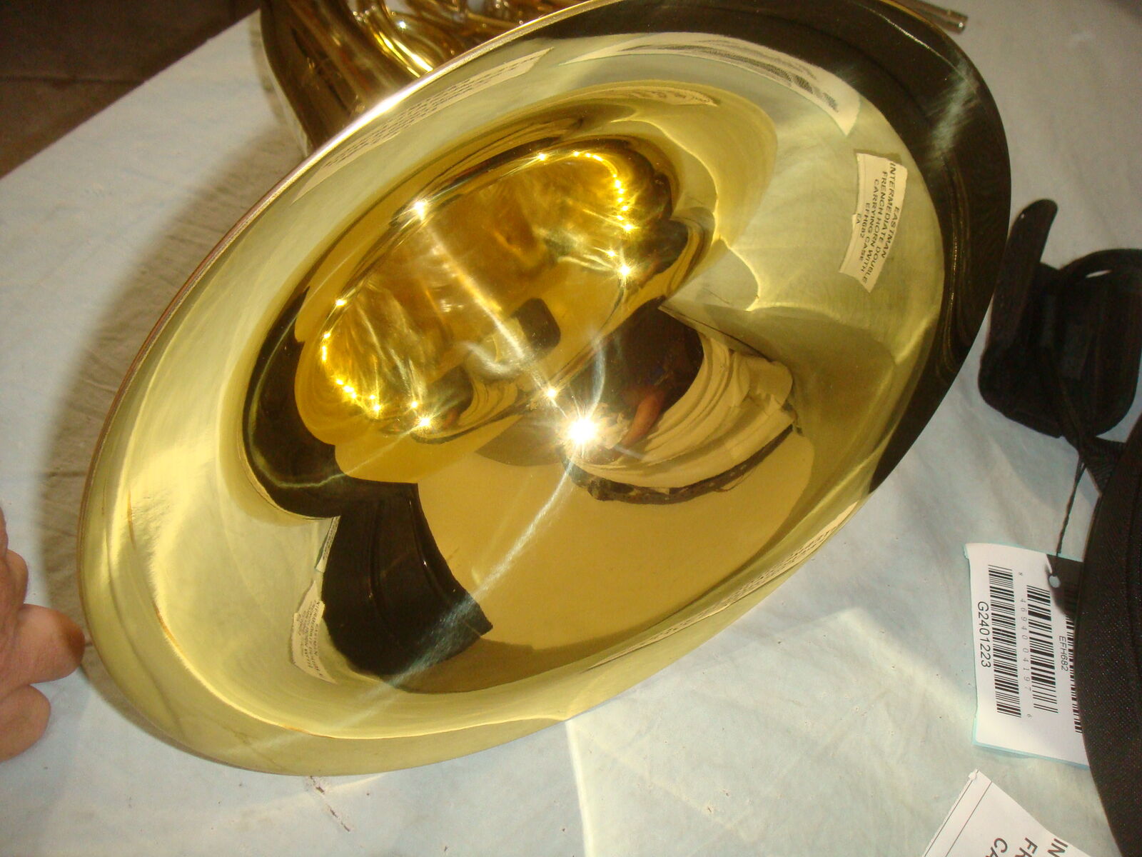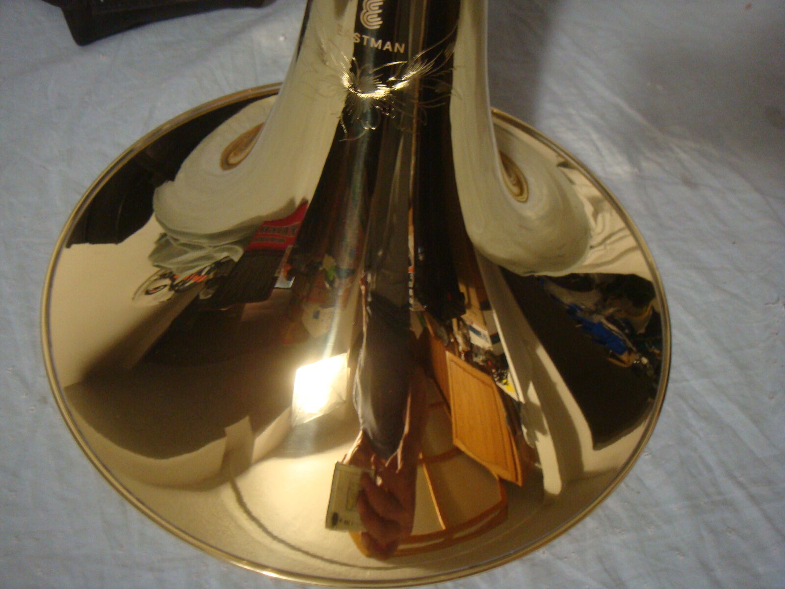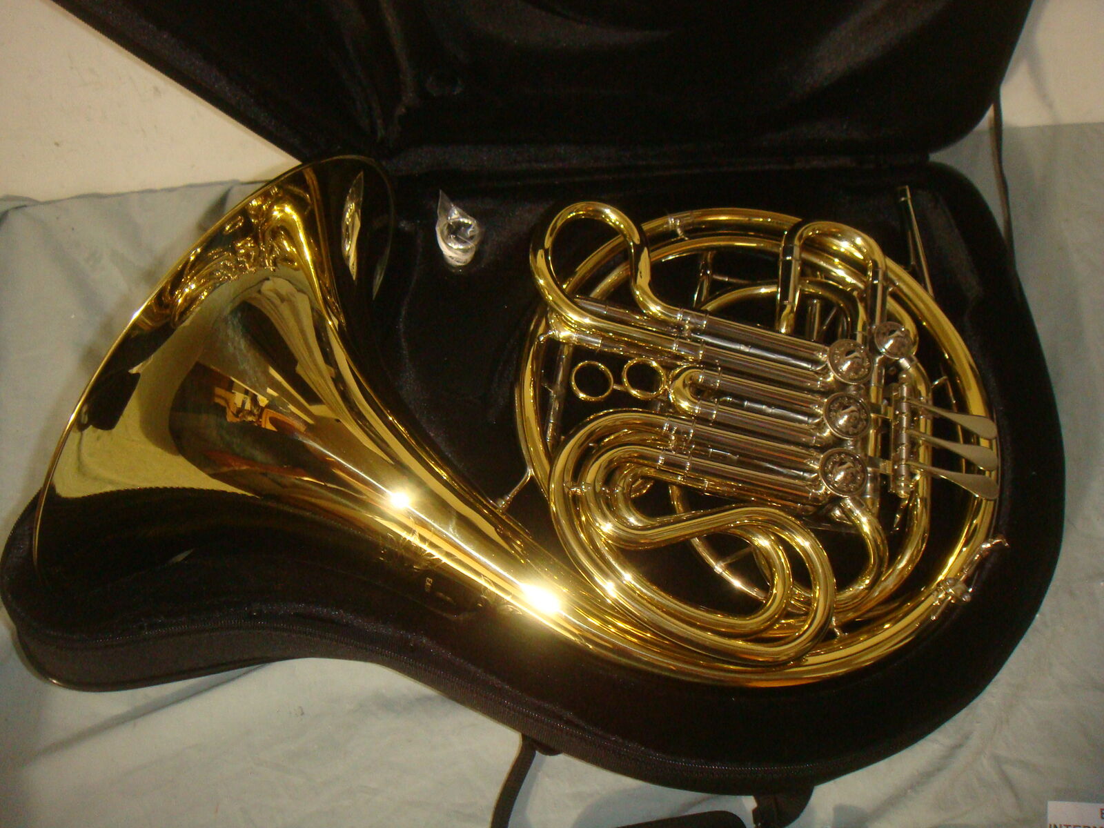 EASTMAN EFH682 INTERMEDIATE GOLD BRASS BELL DOUBLE FRENCH HORN W CASE! This is a brand new, never used, absolutely beautiful, open box French Horn. It has never been played. It does not include the original box/packaging, but is otherwise brand new and in new, perfect condition. It comes with a beautiful lightweight protective carrying case and mouthpiece. This is their higher end performance series French Horn that sells for $4900. It comes with everything shown. Even the lower end beginner student model sells for much more than our asking price, and this is a superior instrument. This is your chance to save big-time so don't miss out!!