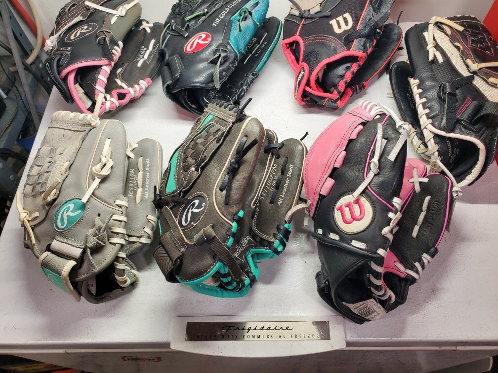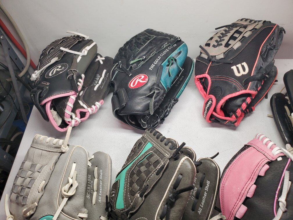 VenmoFastpitch softball mitts. Sizes 10.5", 11" and 11.5". The one on the right is left hand throw and it's 11.5". On the front row, the black/pink one is 10.5" and the other two on the front row are 11". The back row are all 11.5" They are all in great shape and ready for the season. $15 each.