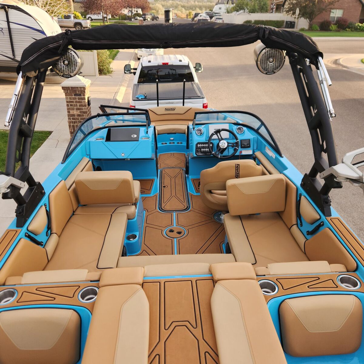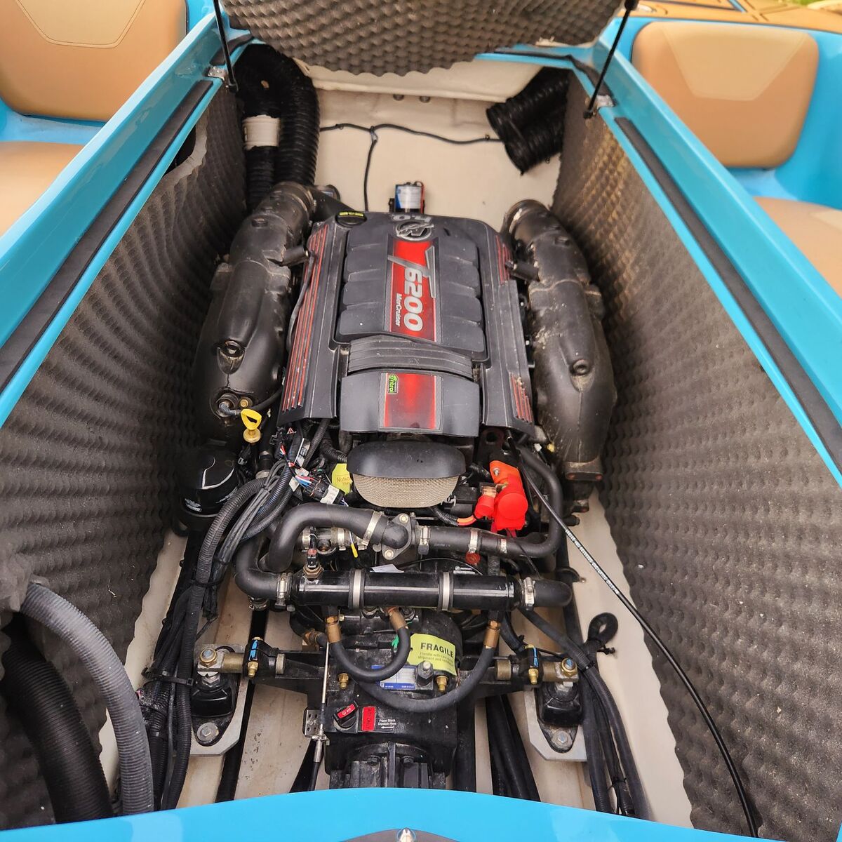 This boat is in excellent condition with only 95 hours. It has always been stored inside with a cover and had all of its regular maintanence done. Wiped down inside and out after every use. It comes with a deluxe travel cover, boat mate trailer, upgraded bow seat insert, bimini, and installed flipsurf (magnetic wedge instead of suction cups. It puts out an amazing wave for surfing). No mechanical issues, runs perfectly. Specs: Engine: Mercruiser 6.2L 370 HP Length: 23' 1" Horsepower: 370 Propulsion: V-drive Hours: 95 Capacity: 17 people or 2300 lbs
