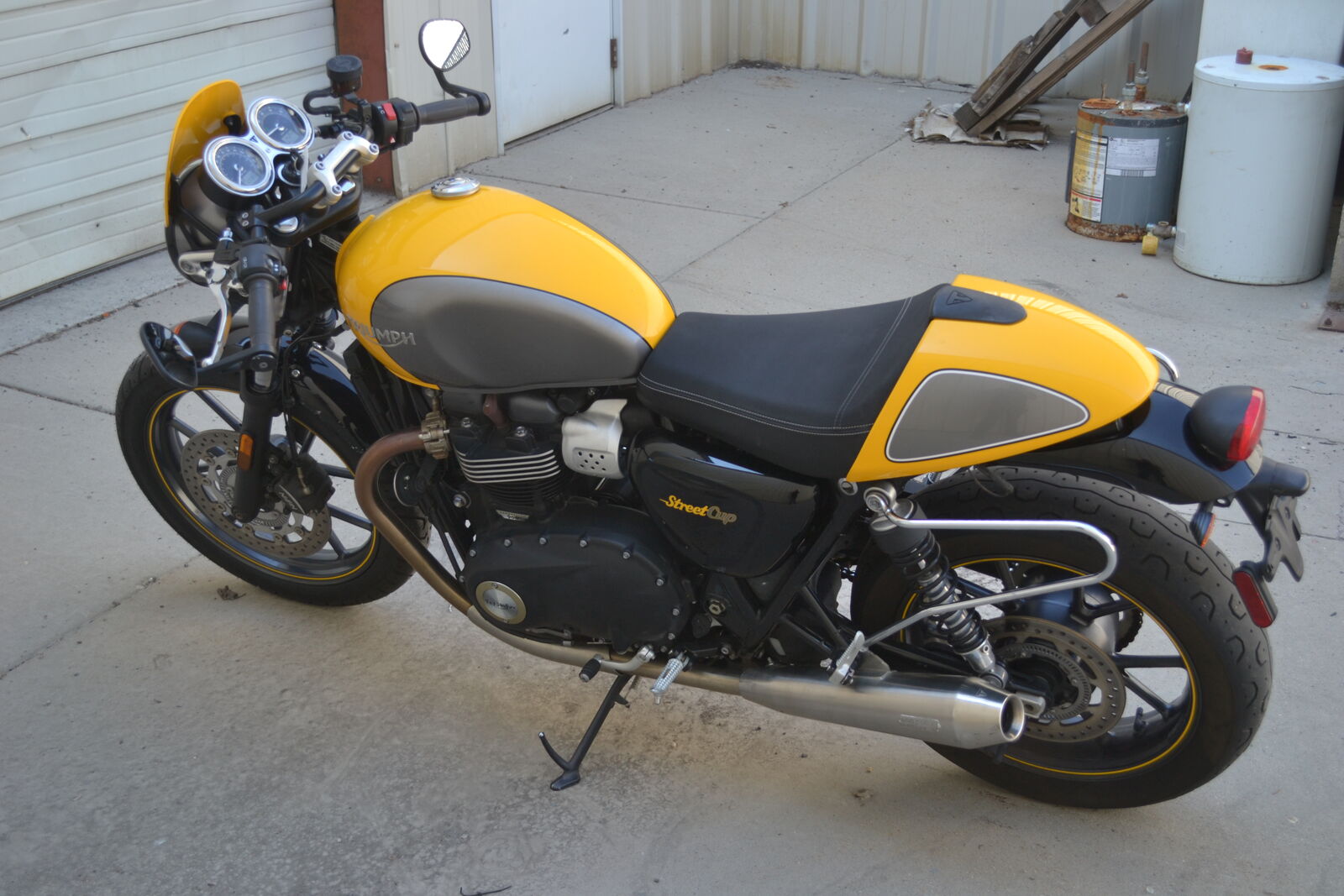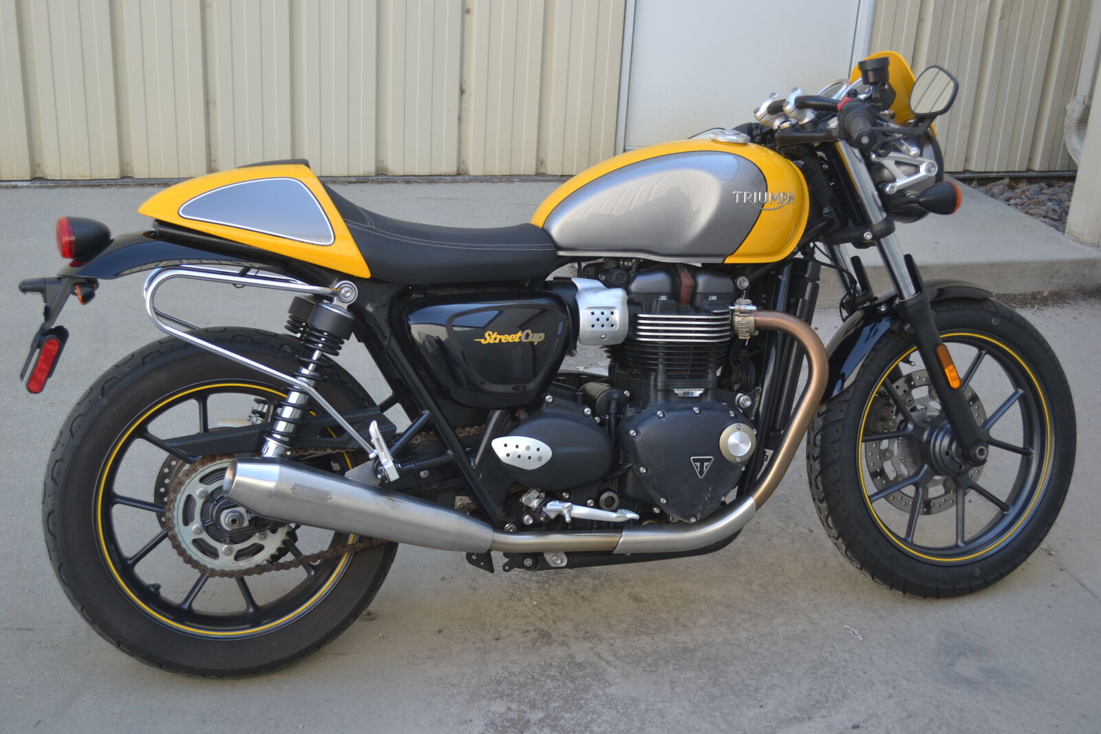 The 2018 Triumph Street Cup features a 900 cc liquid-cooled, 8-valve parallel-twin engine with signature thumpy twin thrust. It comes equipped with ABS, switchable traction control, a slipper/assist clutch, USB charging port, and stylish café racer touches like a fly-screen, forged headlight mounts, and Thruxton-inspired clip-on bars. Its lightweight steel-frame chassis, heightened suspension, and sporty ergonomics bring cafe racer flair with nimble, urban-focused handling. Best suited for beginner to intermediate riders looking for retro-cool style wrapped in a friendly, confidence-inspiring ride. This one has just 11,100 miles and a clean title!