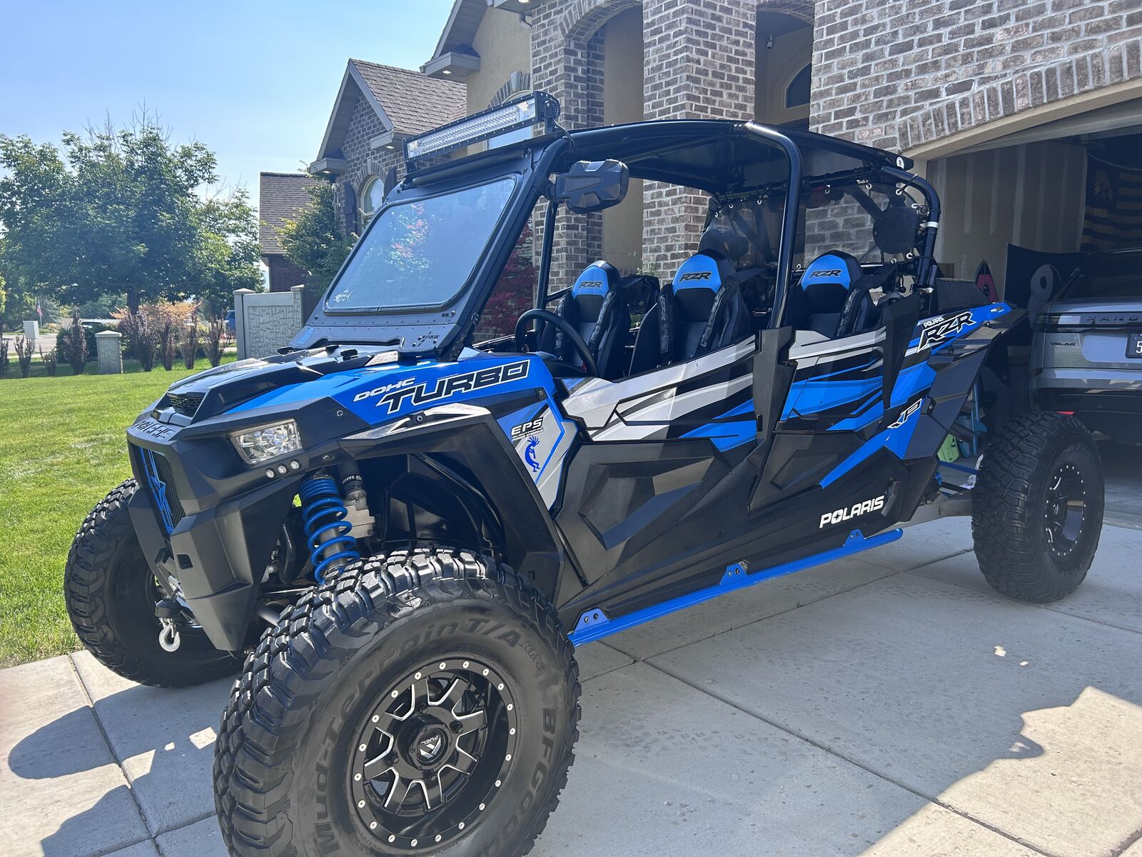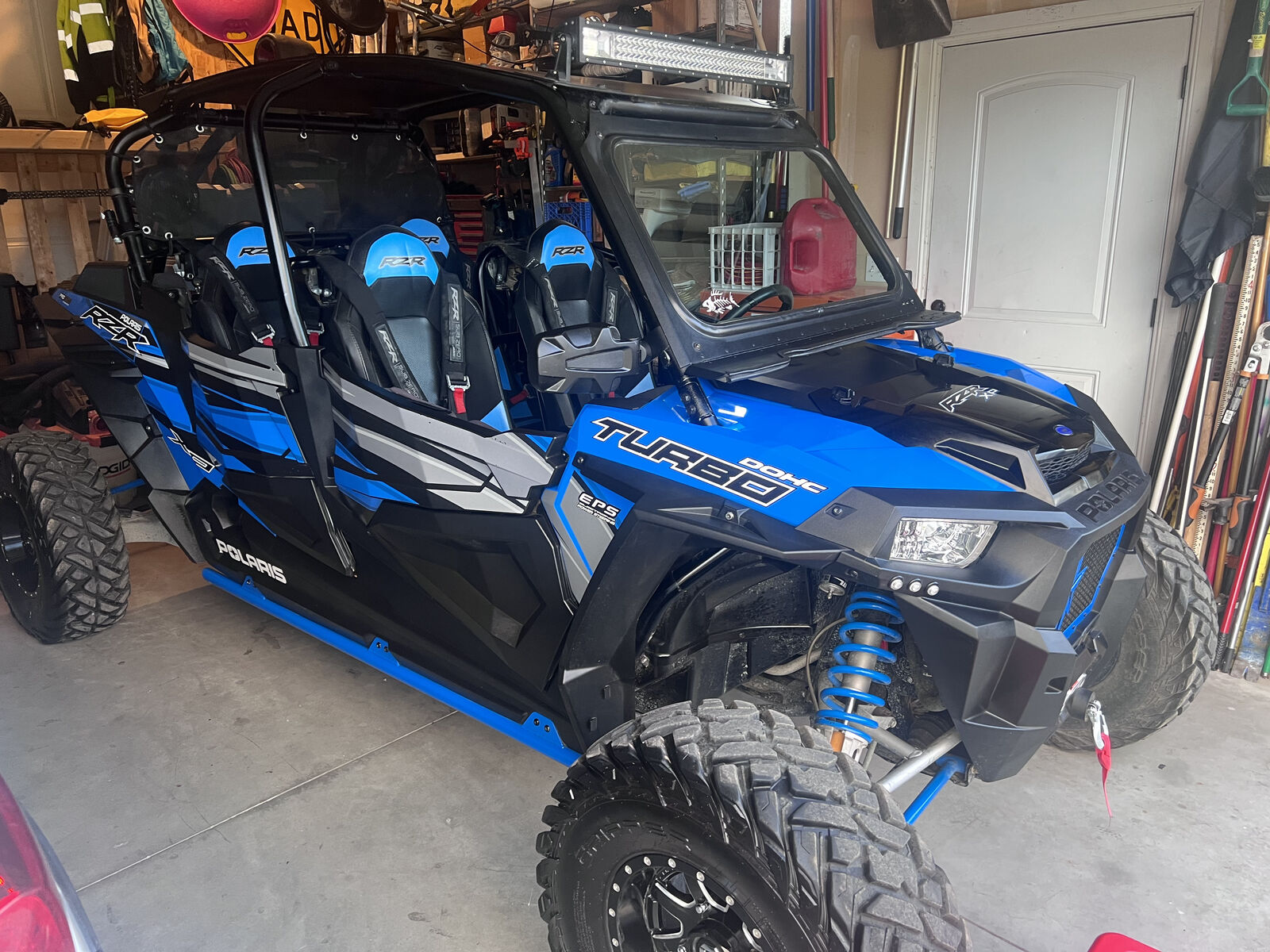 Powerful 2018 RZR 1000 XP Turbo. 4,500 miles. Upgraded pro roll cage, full glass windshield w/bottom lift vent, back window net, full doors w/ bags, 5 point harnesses, street legal kit, side mirrors, after marker heavy duty steering tie rods, heavy duty shocks, side rock sliders, ground affect lighting, light bar, light whips, MTX Stereo and subwoofer, fire extinguisher, cooler mount, 3 sets of tires including paddle tires (2 sets of wheels), and snow plow. Regular maintenance, always stored in garage or enclosed trailer.
