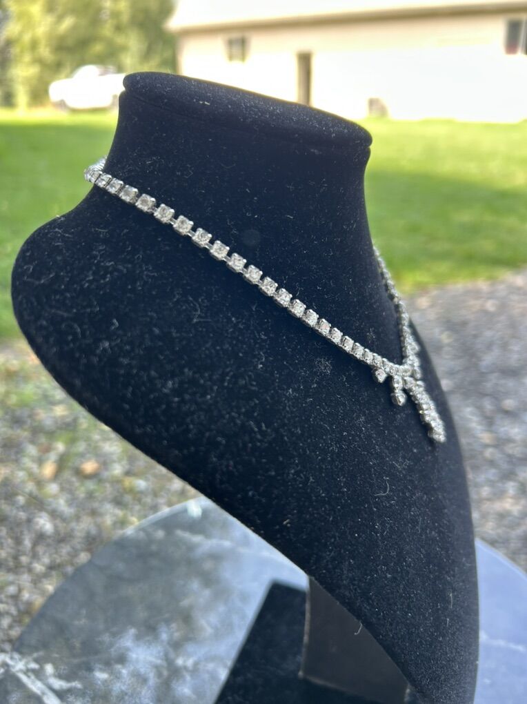 VenmoVintage rhinestone Y-shaped necklace in excellent condition. Silver toned metal with clear, crisp rhinestones. For prom, homecoming, formal dances, weddings, quinceañeras, and special occasions. Measures 15 inches. Smoke free, clean. Cash or Venmo. Pick up in Alpine.