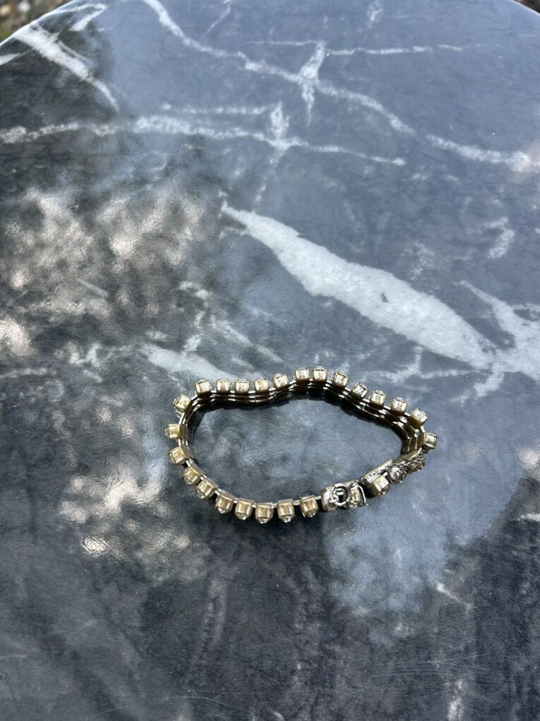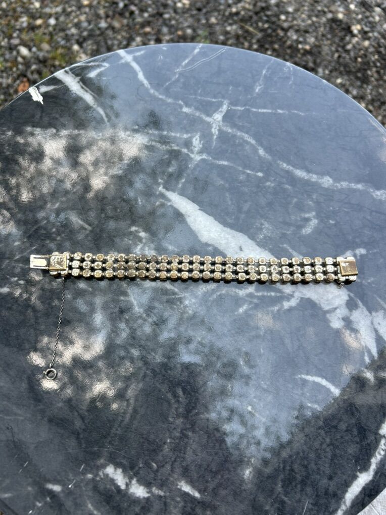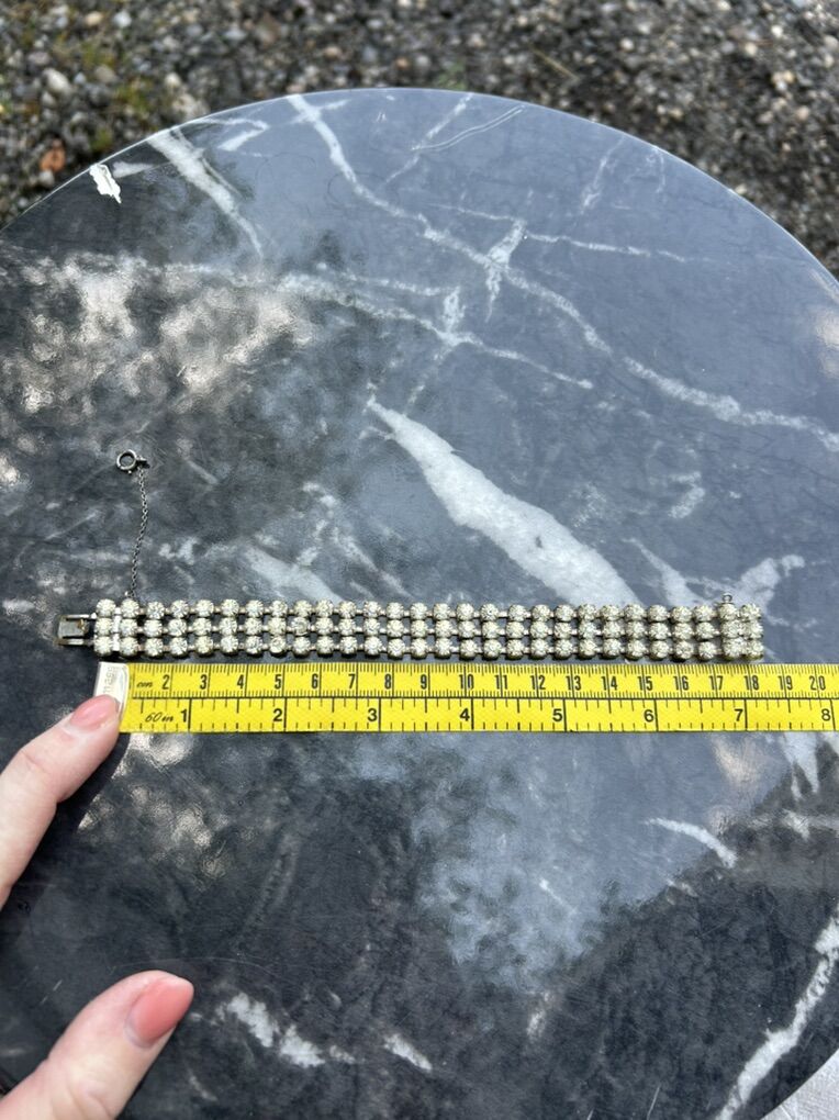 VenmoBeautiful three row cubic zirconium 1950s 1960s vintage bracelet stamped with Czechoslovakia. Additional safety chain was added, which is made from Sterling silver. Clean smoke free. Cash or Venmo. Pick up from Alpine.