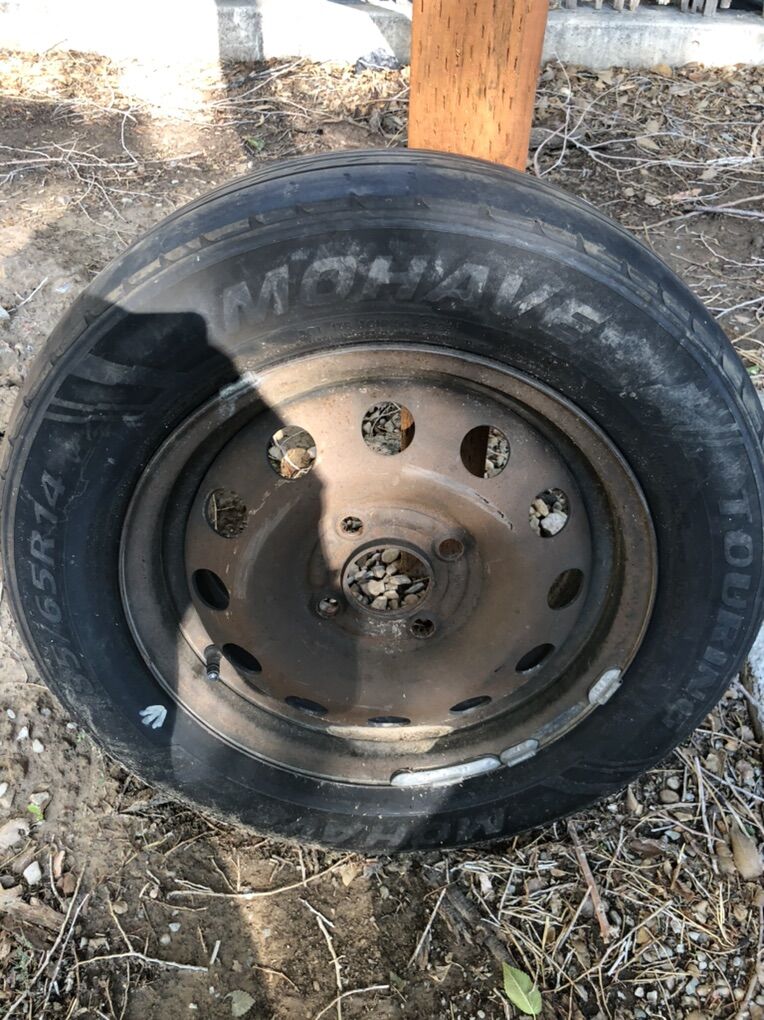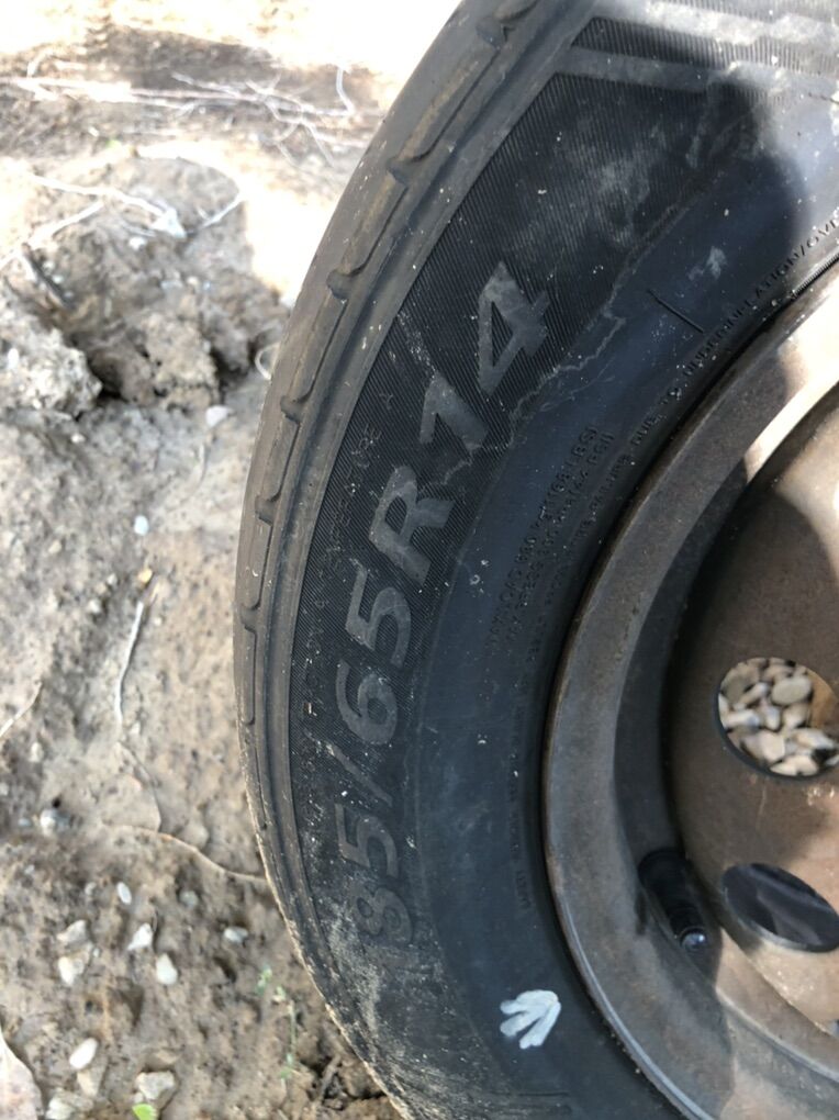 I used this one as my spare tire for my old Mercury mystique. Tire is balanced and ready to use, you can see the new weights on it. I’m only asking what it cost me to do the balancing. Tire was fabricated in 2023 Its a 4 bolt patter.