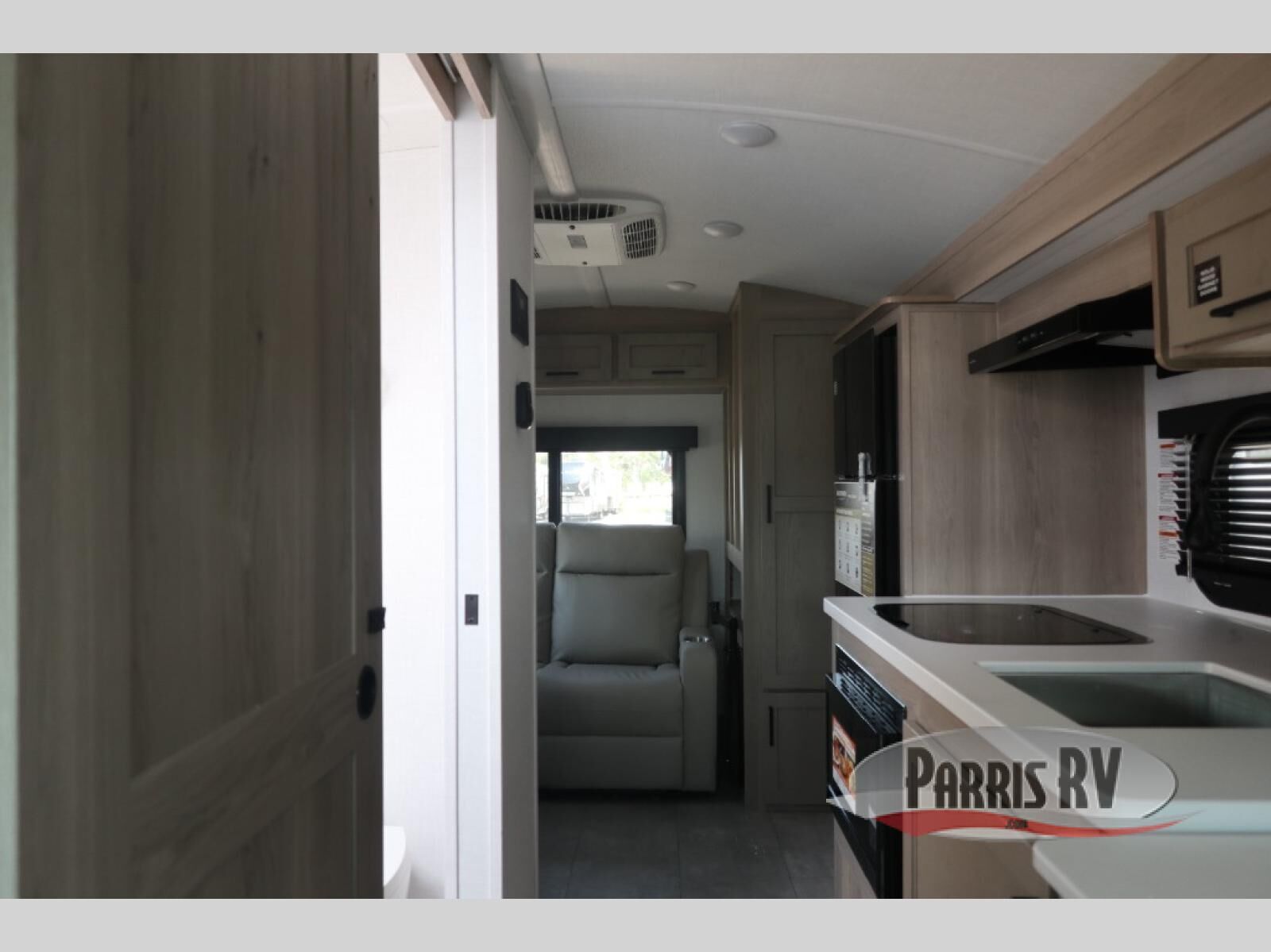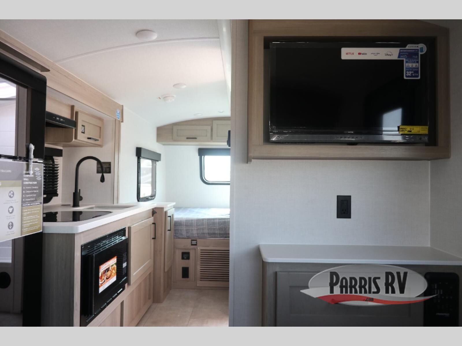 Start having unforgettable adventures with this amazing travel trailer! The queen-sized bed is the perfect spot to unwind and recharge after a day of exploring, offering a restful sleeping space that's sure to leave you feeling refreshed. The full bathroom has everything you need to refresh and rejuvenate in private. In the kitchen-living room combined area, you will find a three-burner cooktop for gourmet meals, a convection microwave for quick and easy cooking, and a spacious fridge to keep your ingredients fresh, plus overhead cabinets and a pantry/closet provide ample storage for cookware, dishes, and food. In addition, you can have endless evenings of amusement in the theater seat, which is the perfect spot to relax and enjoy your favorite shows or movies on the TV. On the outside, the exterior awning provides a shaded spot to enjoy the outdoors, while the pass-through storage offers plenty of room for gear, luggage, and equipment.