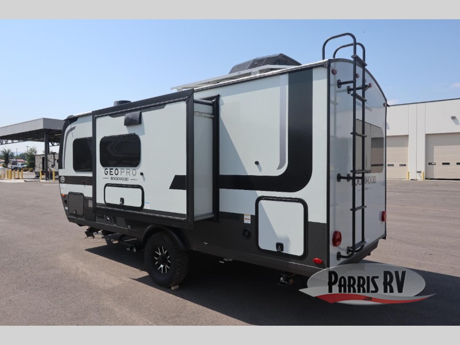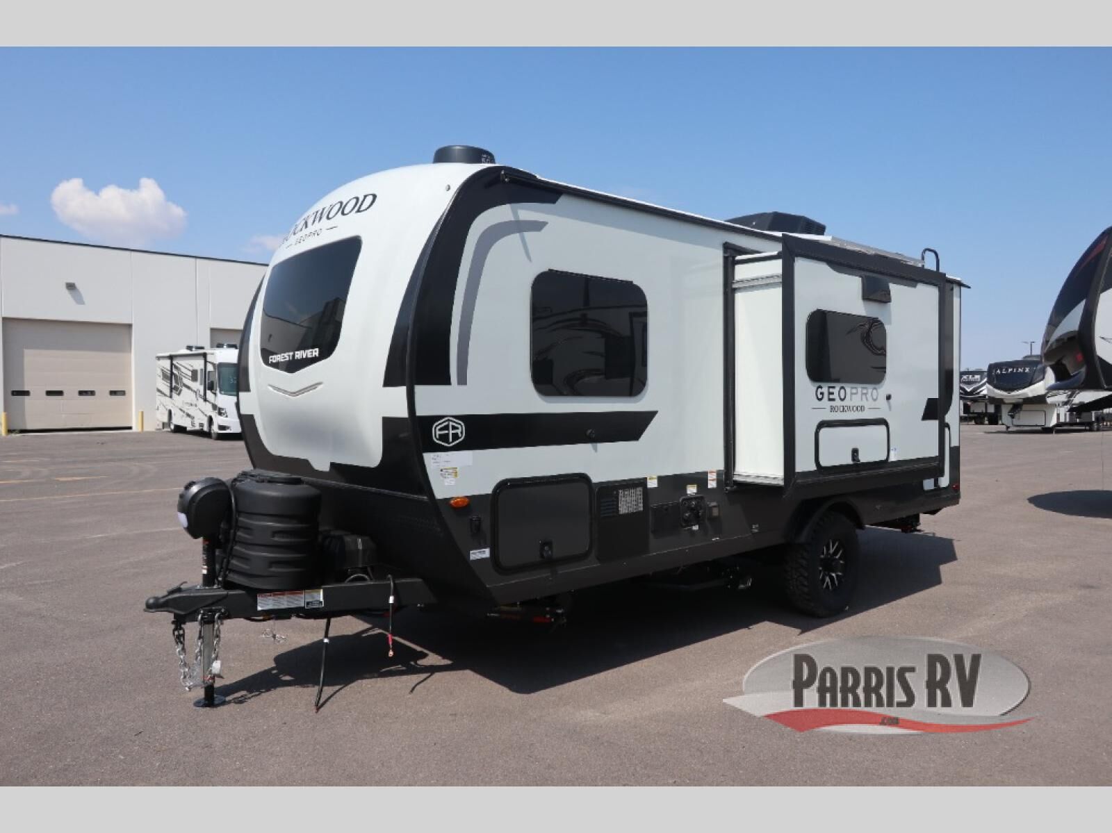 With any Rockwood GEO Pro travel trailer by Forest River you will enjoy easy towing, durable construction, and off-road capabilities with larger l****aminated roof! Each model is constructed with complete composite wall construction for added strength and durability, and Dexter® axles that will make towing easier than ever. Inside, you'll find sleek back up camera prep for added security, a refrigerator and a microwave, plus many other interior amenities that will make you feel at home on the road.