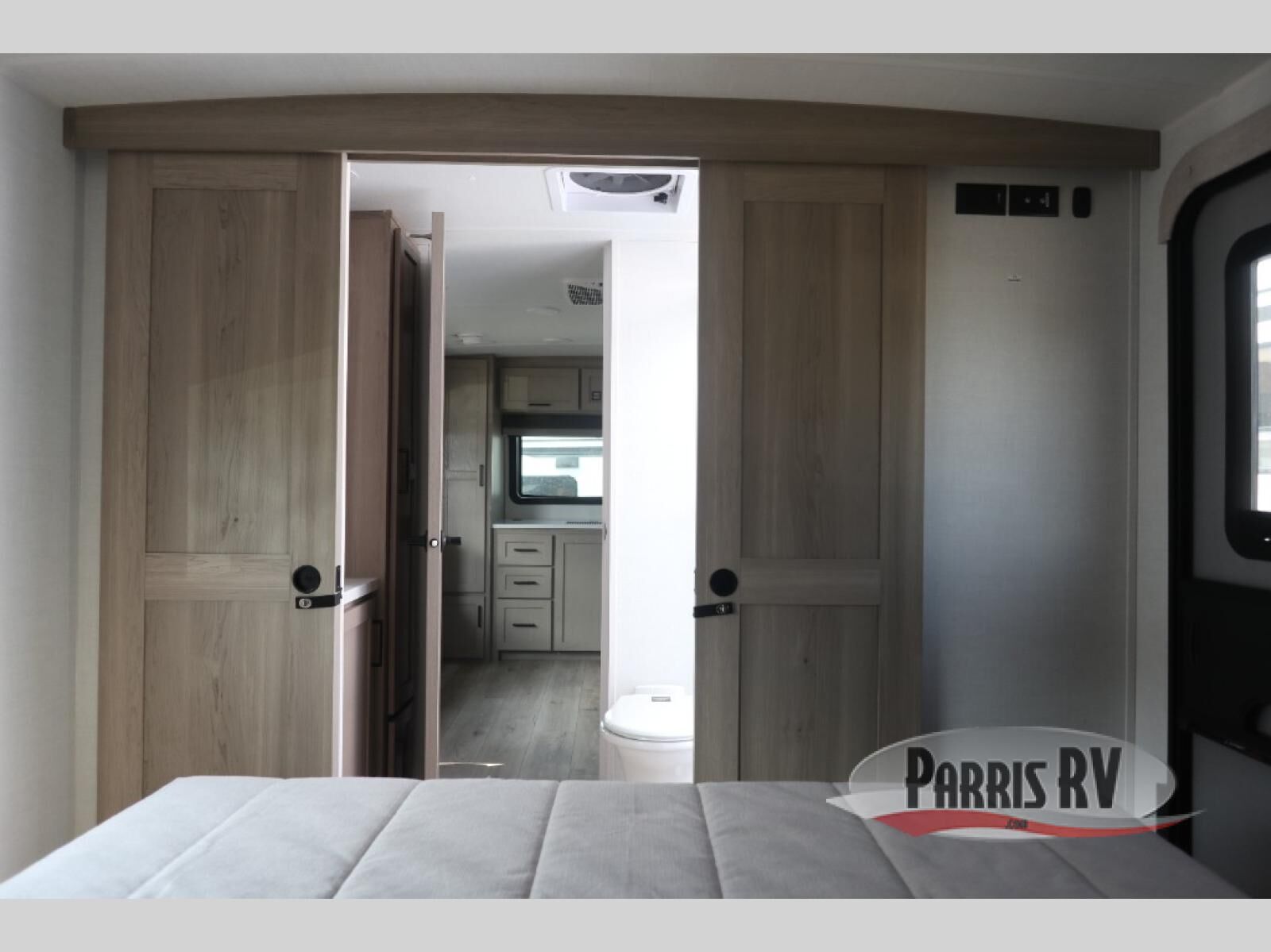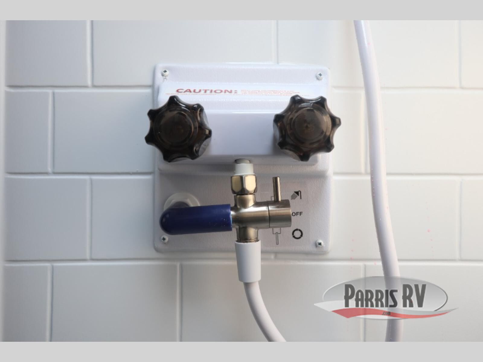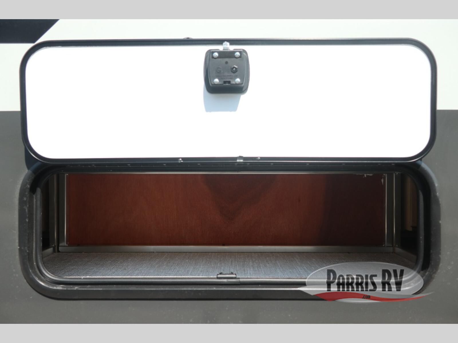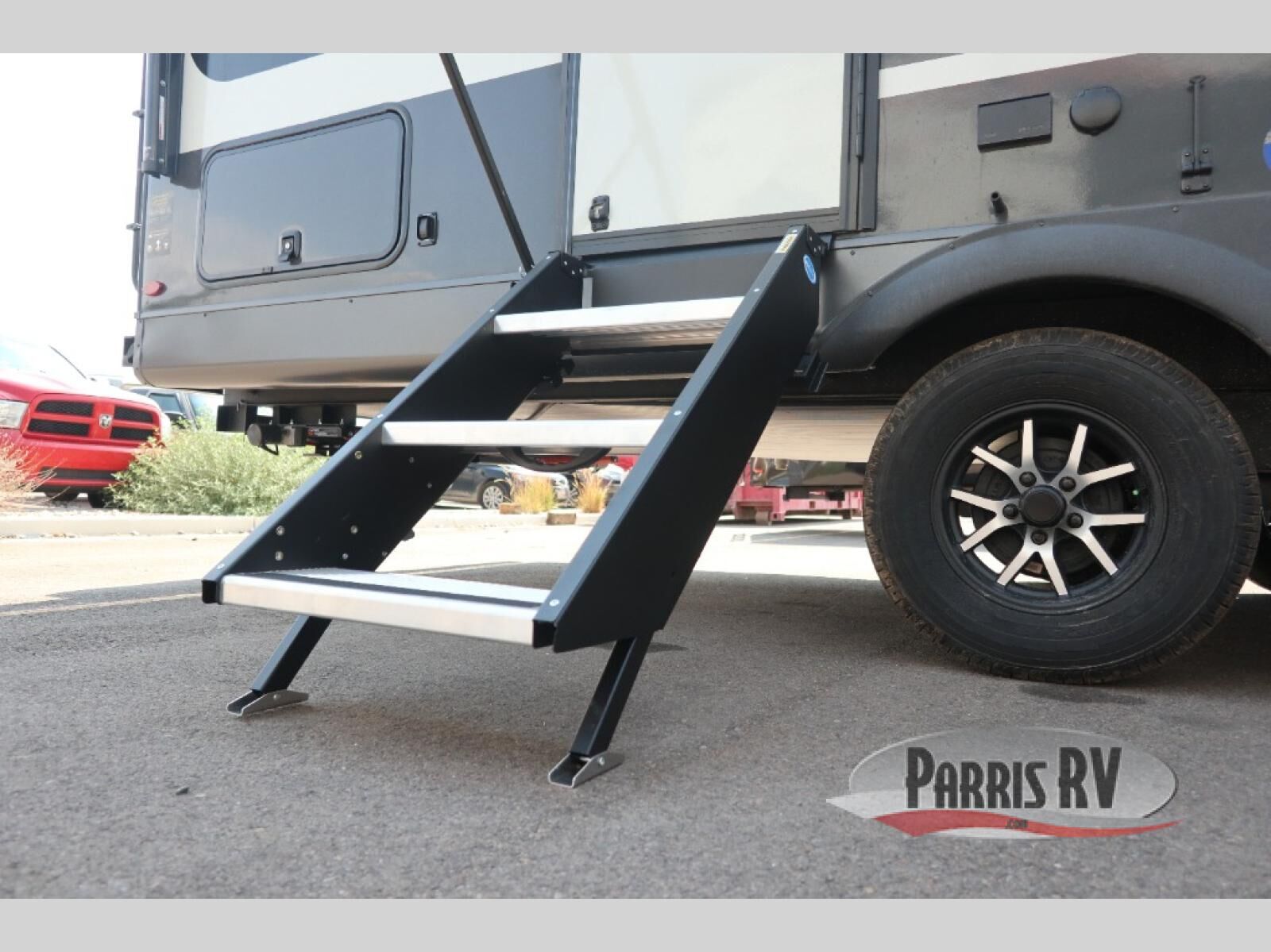 If you like the front kitchen layout, you're going to love this one! You'll have plenty of counter space to prepare and cook meals, or you may just want to head outdoors to cook on the outside griddle. There is a 19' power awning with LED lights to keep you protected from the sun and rain, and there are three exterior storage compartments for lawn chairs, fishing poles, and firewood! This model includes a U-shaped dinette slide in perfect view of the 12V smart entertainment TV and fireplace, and this area can double as your guests' sleeping space at night. You'll stay comfortable in the rear bedroom that includes an RV queen bed, dual bedroom wardrobes, and an optional TV if you enjoy movies in bed!