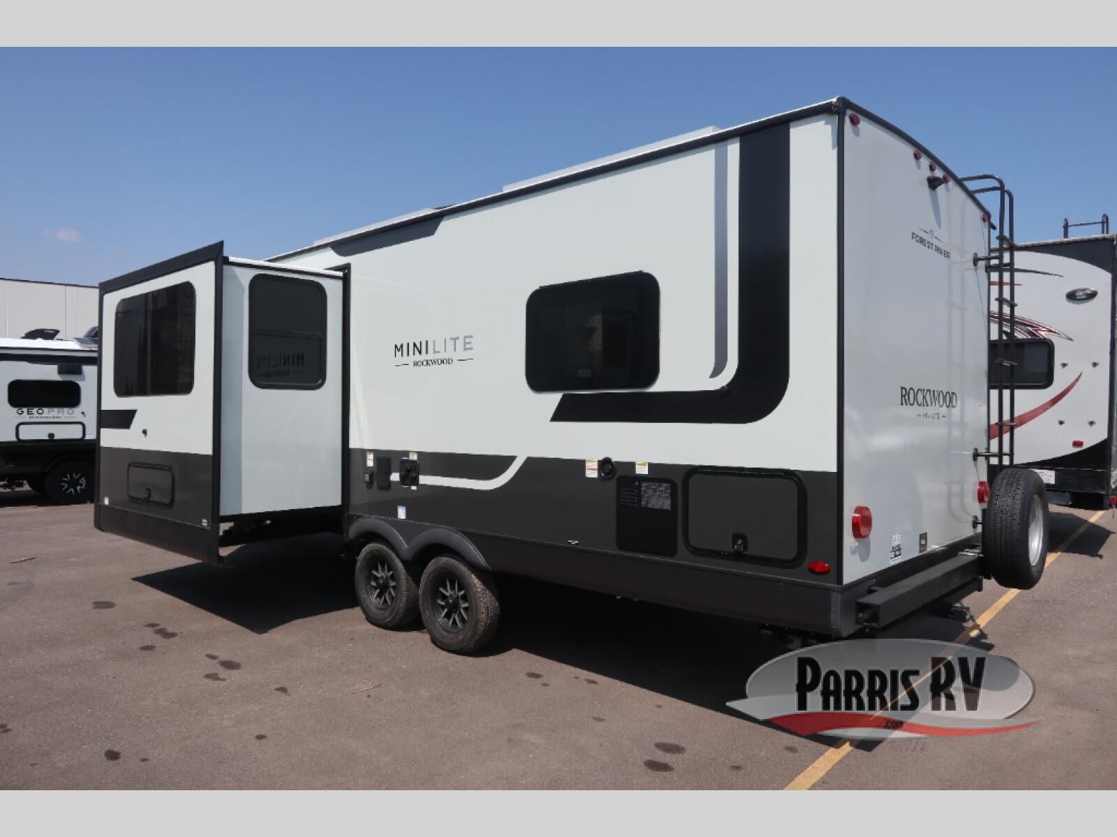 Each Rockwood Mini Lite travel trailer by Forest River is constructed with a fully laminated one-piece walkable roof, sleek frameless windows, and a six-sided full aluminum frame for strength and durability. The 12V thermostatically controlled heated tanks, plus radiant foil in the underbelly will allow you to camp well into the colder months, and the 200W roof solar panel will be perfect for a little off-gridding. Each model includes solid surface kitchen countertops, hidden hinge cabinet doors, roller shades, plus many more interior features. Having an AIR 360+ omnidirectional antenna with WiFi prep on board gives you the option to get some work done if it's needed, and the power tongue jack provides hassle-free set up, so you can enjoy more time relaxing!