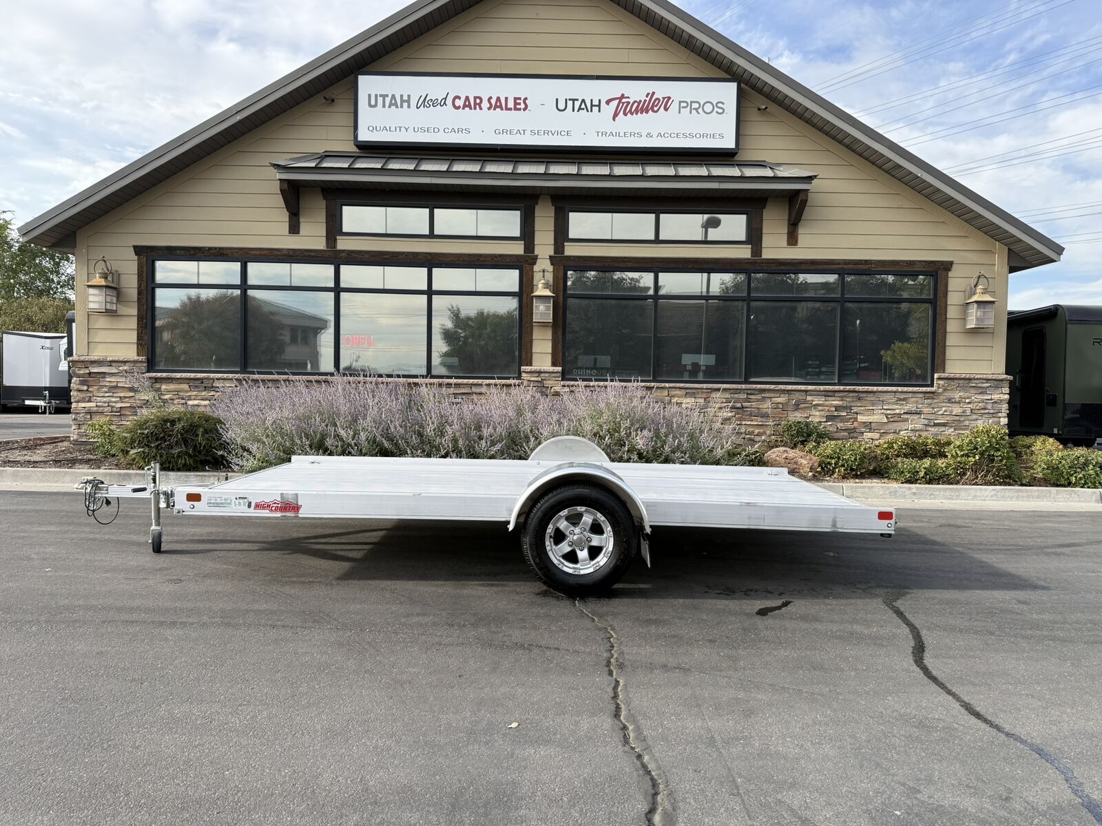 High Country 7x14 All Aluminum Tilt UTV/ATV/Motorcycle/Utility Trailer!!! 5 Year Warranty!!! 5x Rows of Sliding D-Ring Tracks!!! Tilt Deck!!! Ultra Light!!! Just about anyone can hand move this trailer around and on and off their hitch!!! This is the HIGHEST QUALITY All Aluminum Trailer you will find in Utah!! These are on SUPER End of Summer Sale!! Only a few left!!! Get them before they are gone!!!!